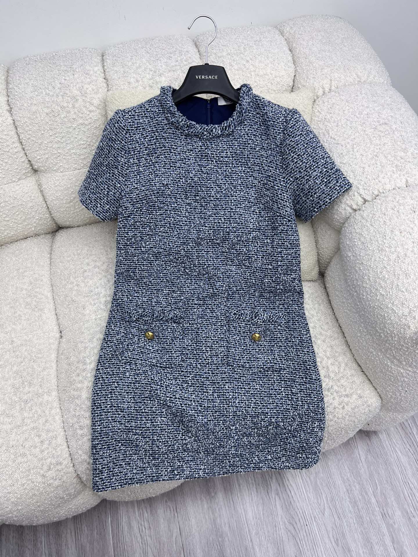 A refined, ladylike tweed dress that exudes understated luxury.
