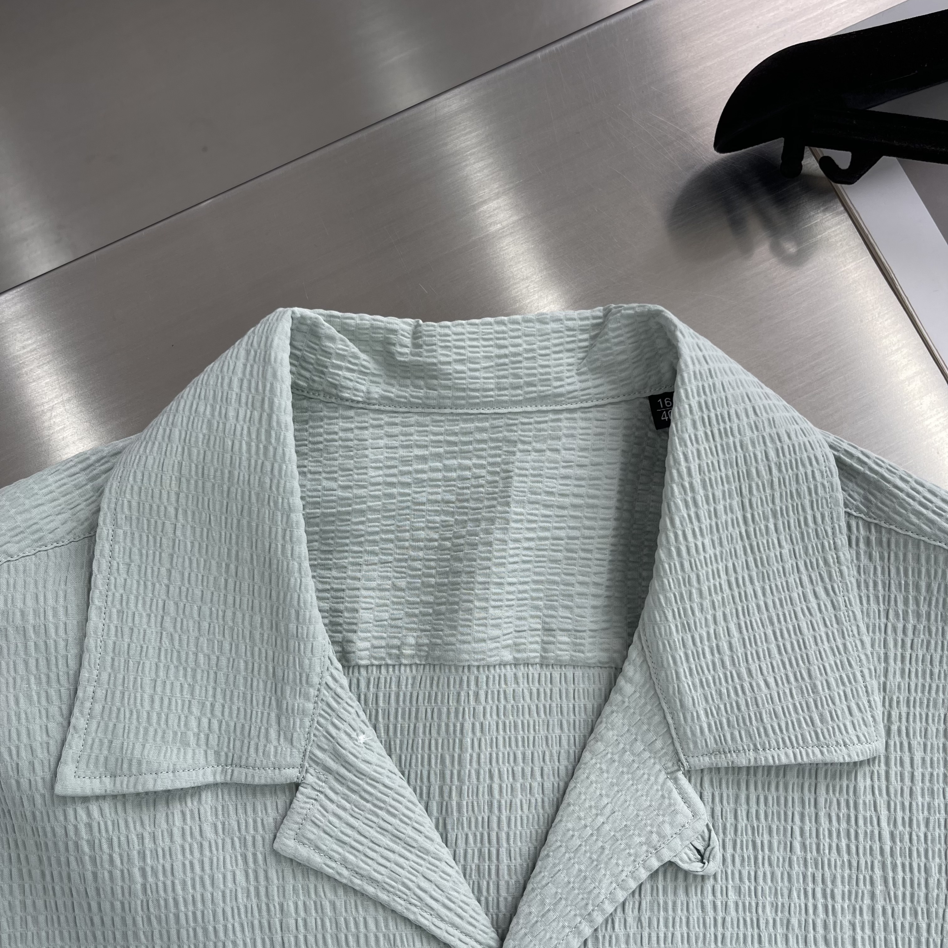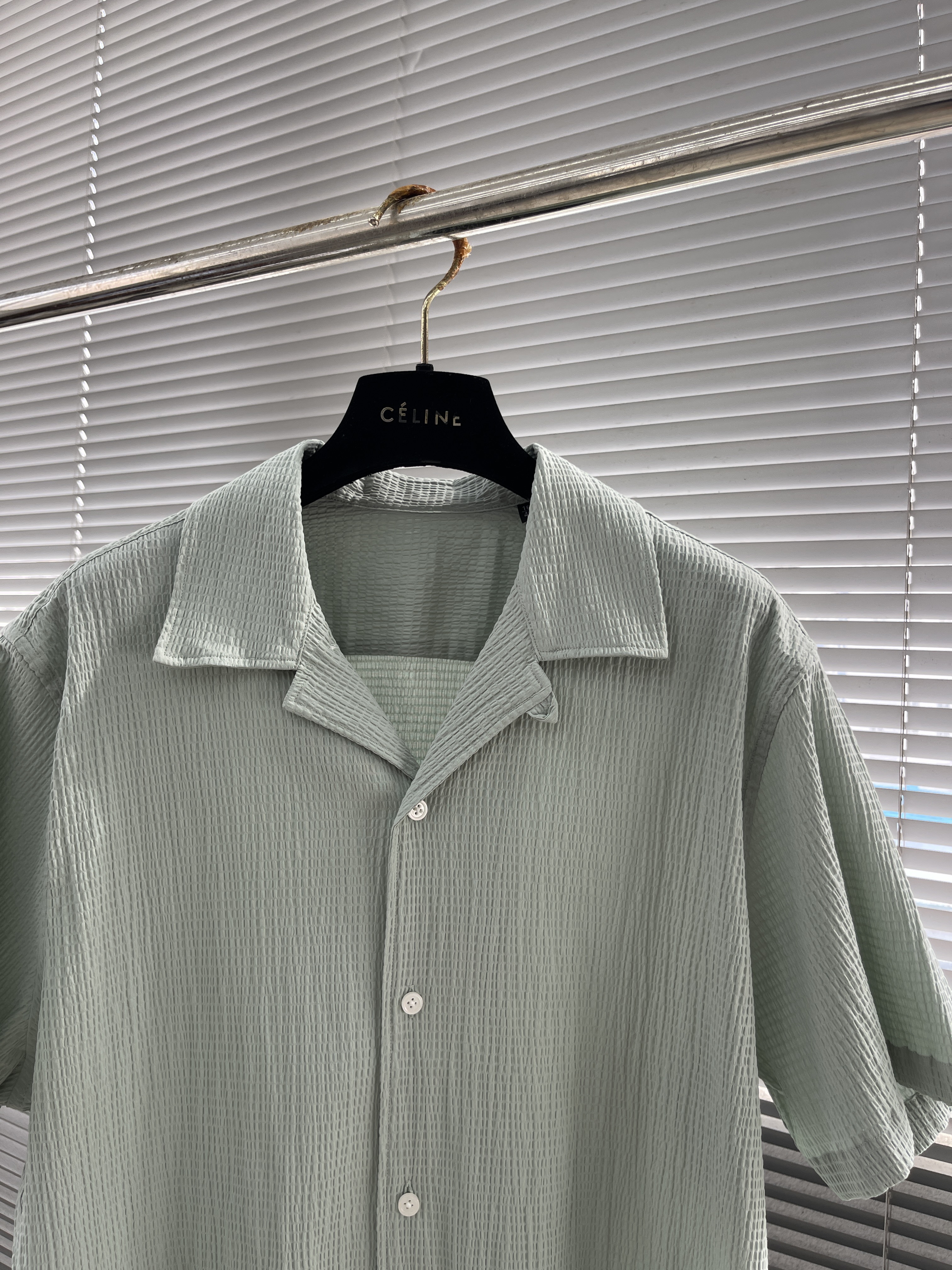 This short-sleeve shirt features a modern Cuban collar and side-slit hem, embodying a blend of refined gentlemanly elegance and relaxed summer style.
