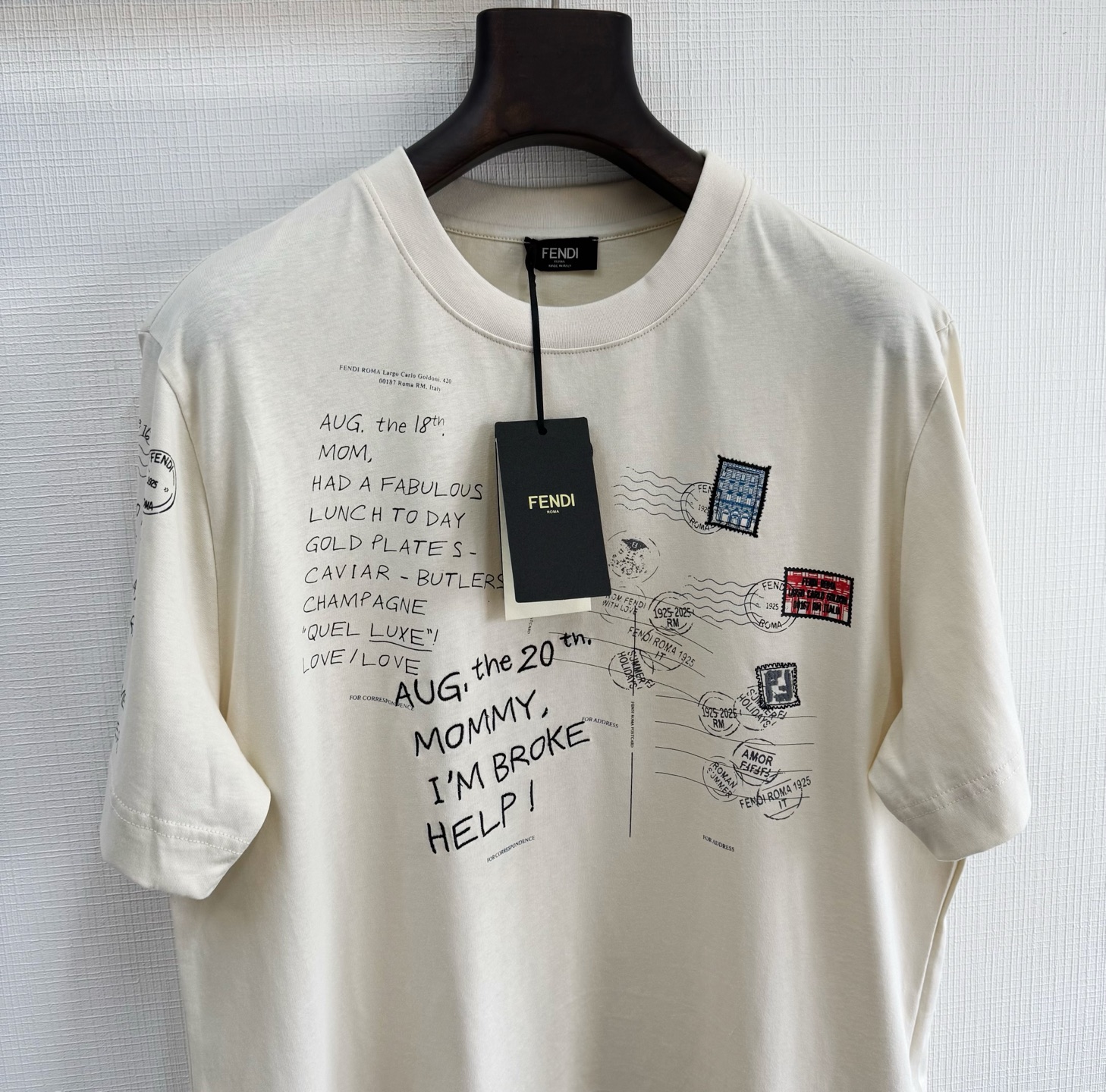 Fendi 25SS Stamp-Inspired Crew Neck T-Shirt
