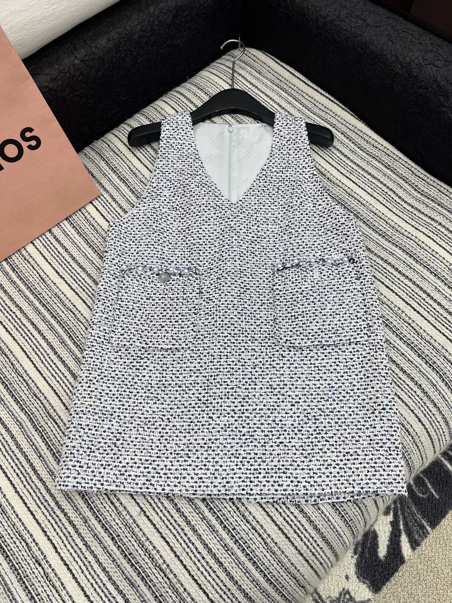 Chanel-2025 New Tweed Round-Neck Pearl Vest Dress
