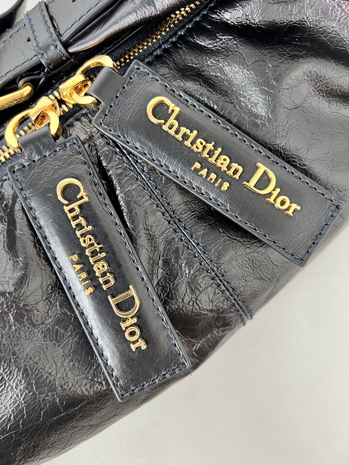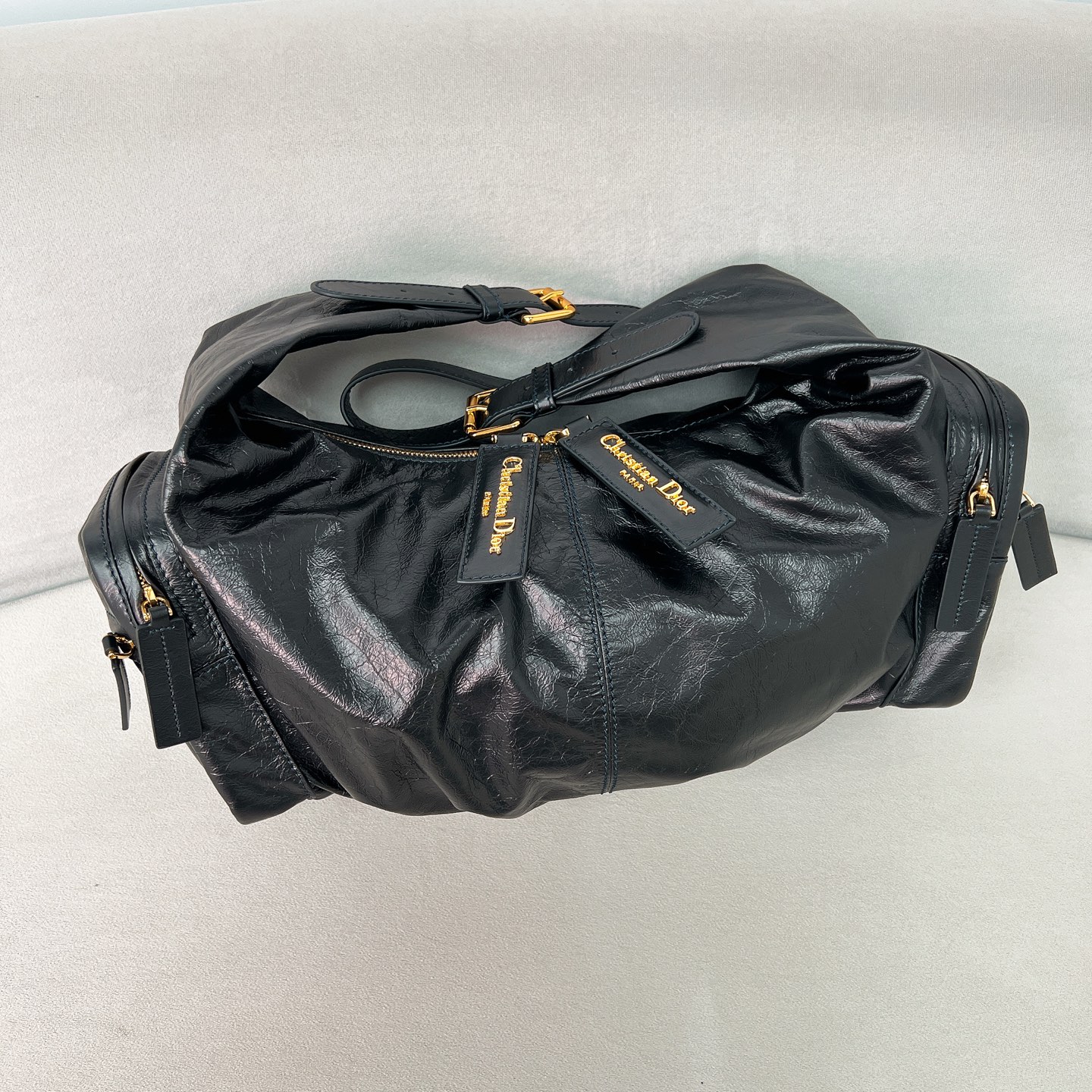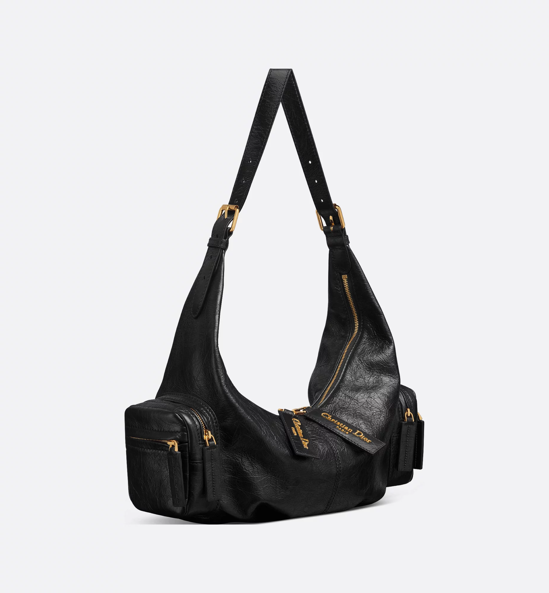 New for Fall 2025, the Grand Tour Multipocket bag is an ultra-practical creation combining modernity with refined detailing. Crafted in black crinkled calfskin, the supple design features a spacious main compartment with two large leather zipper pulls with gold-finish metal Christian Dior Paris signatures. Two zipped double pockets on the sides provide access to small essentials. Equipped with an adjustable leather strap, the large versatile bag can be worn over the shoulder or crossbody with any of the season's looks.