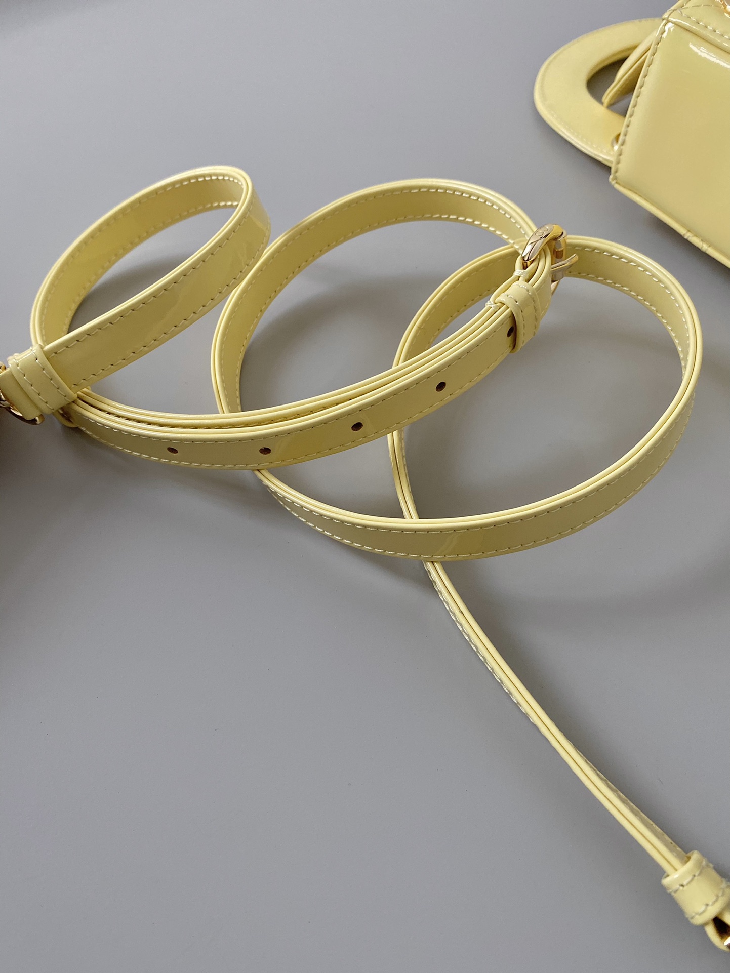 Perfect for summer, this sweet and charming hue pairs beautifully with light and pastel outfits. The compact 3-grid size (17×15×7cm) is just right for everyday outings—small yet effortlessly elegant. Plus, the glossy patent finish adds a subtle shine, making it a true head-turner under the summer sun.