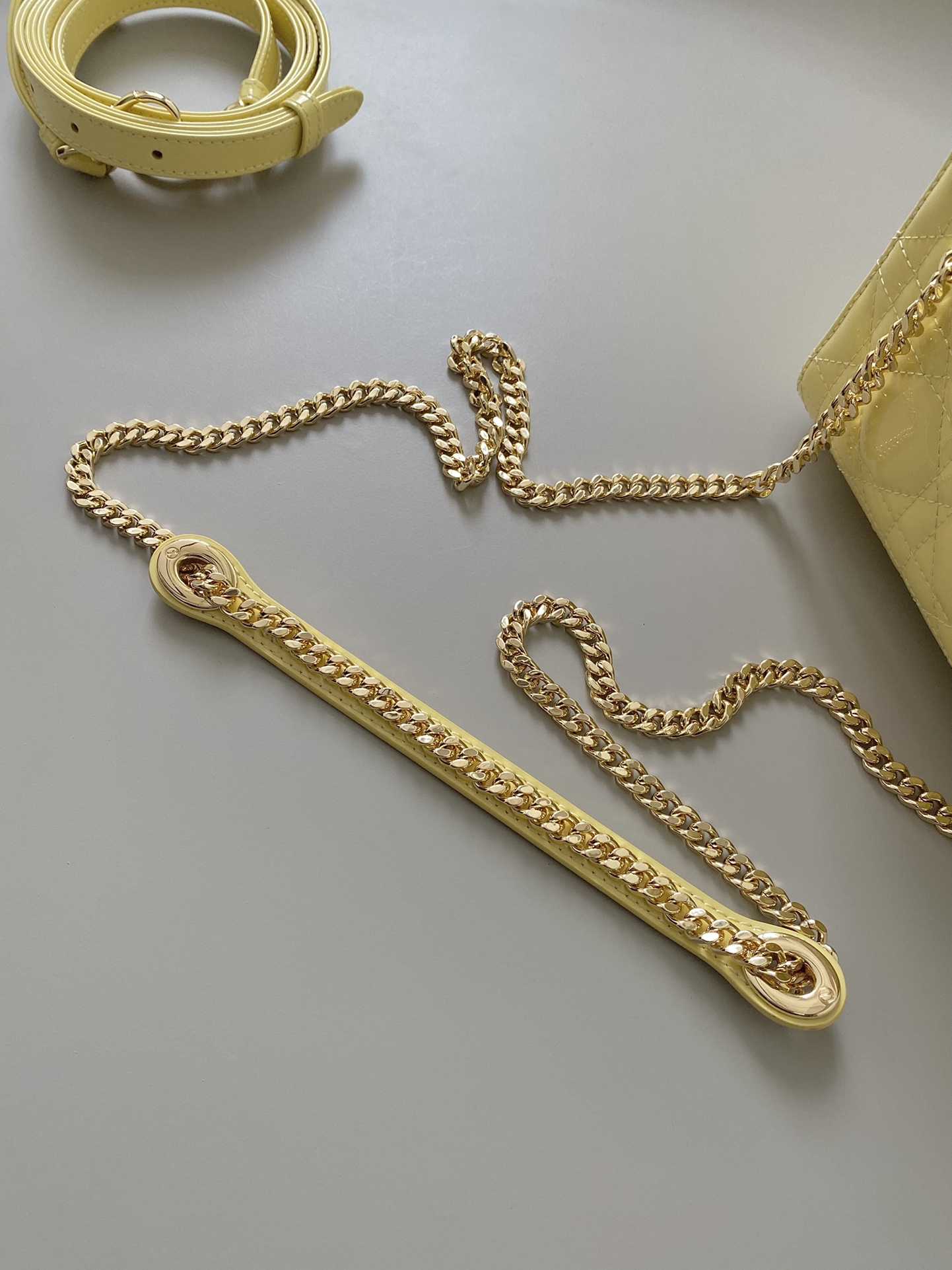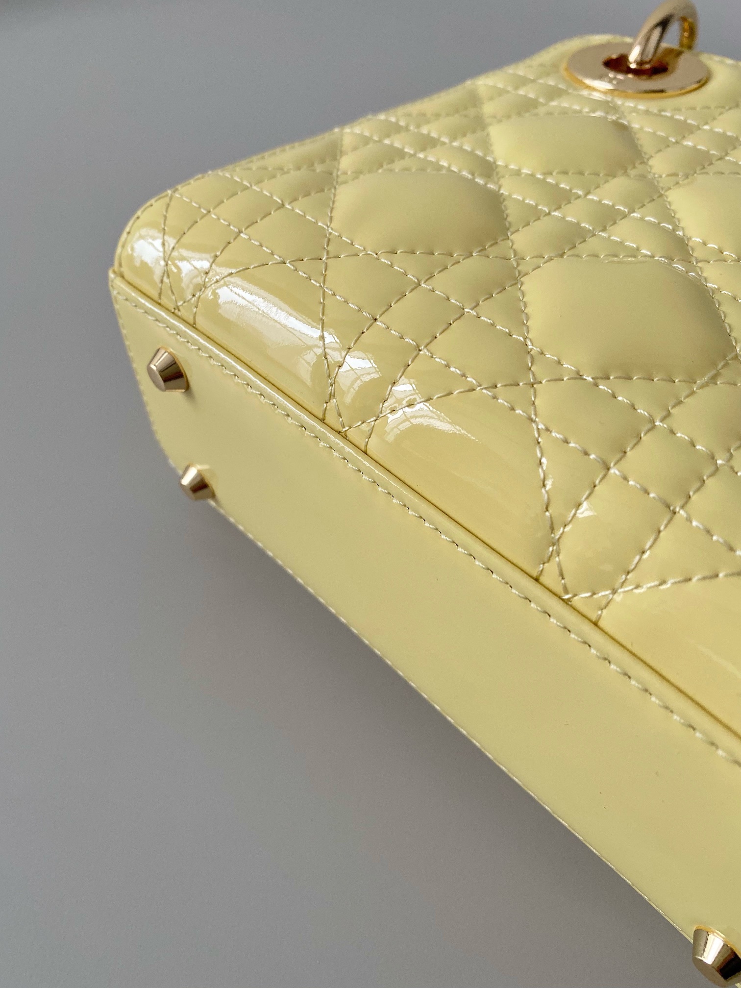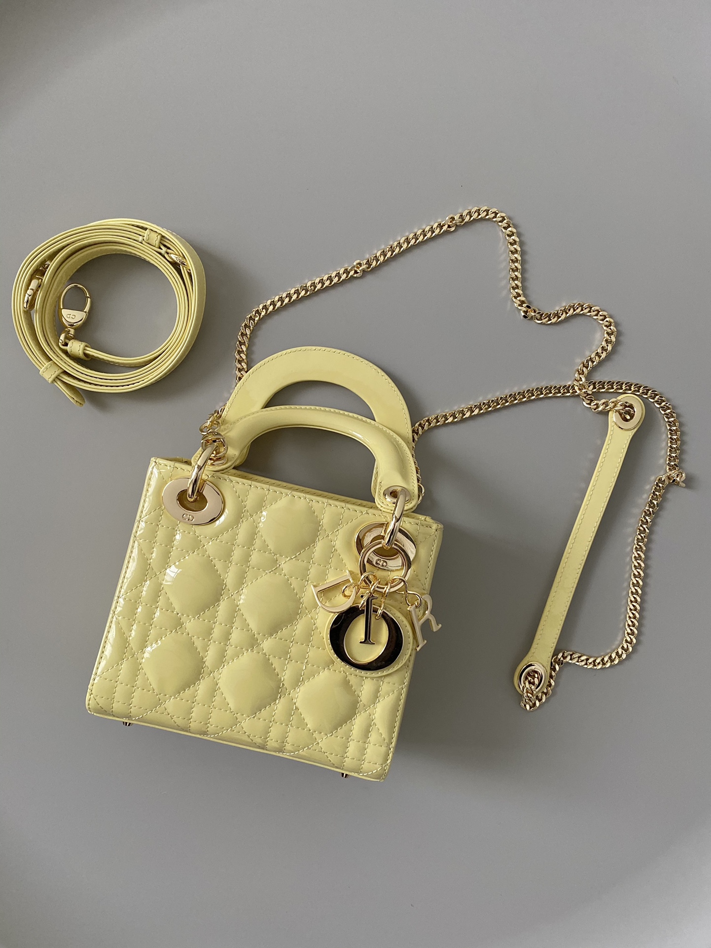 Who can resist this adorable new shade? 💛 The Dior Lady 3-grid in glossy patent leather now comes in a buttery soft chick yellow, a color so delicate and refreshing that it instantly lifts your mood!
