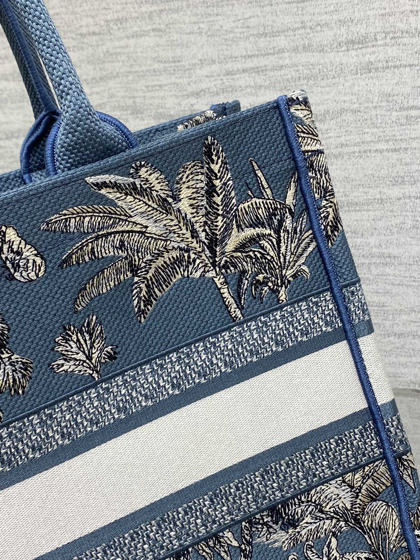 Features a blue base with embroidered palm tree pattern, full of tropical vibes 🌴