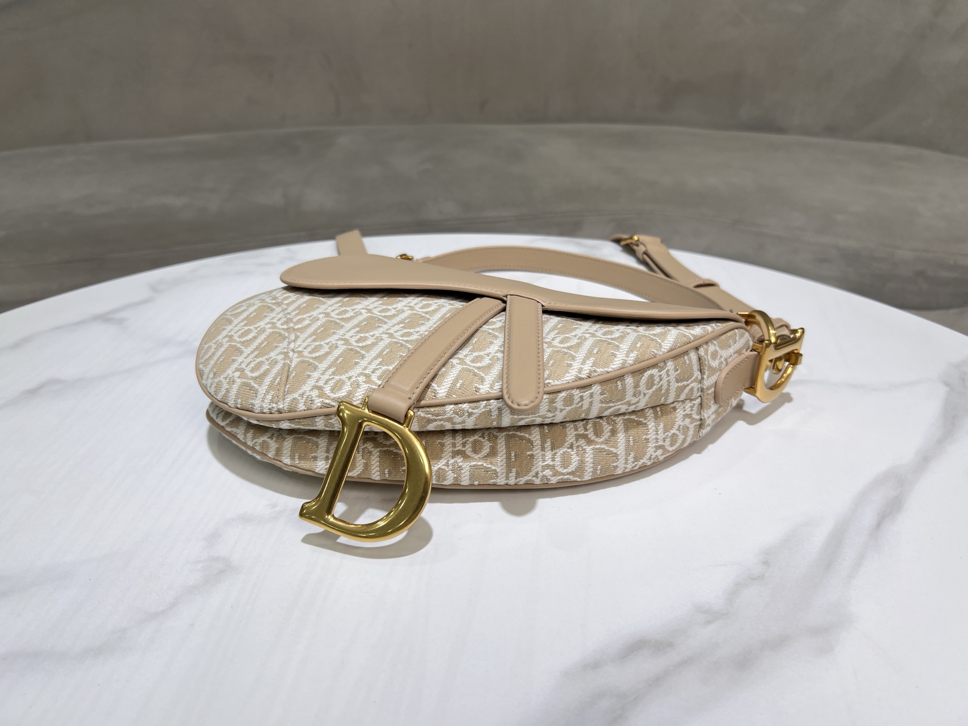 Material: Beige Oblique Jacquard + antique gold-tone hardware (vintage luxe)