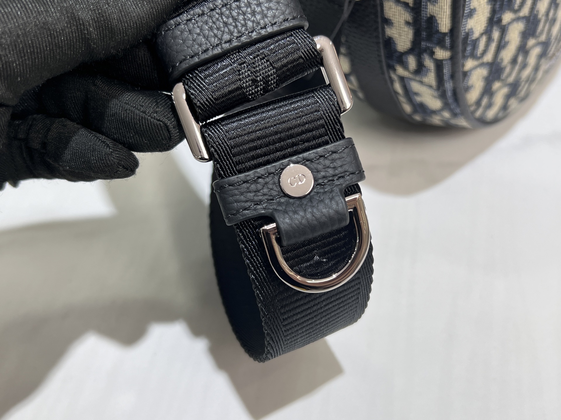 Adjustable Dior-jacquard strap with D-rings