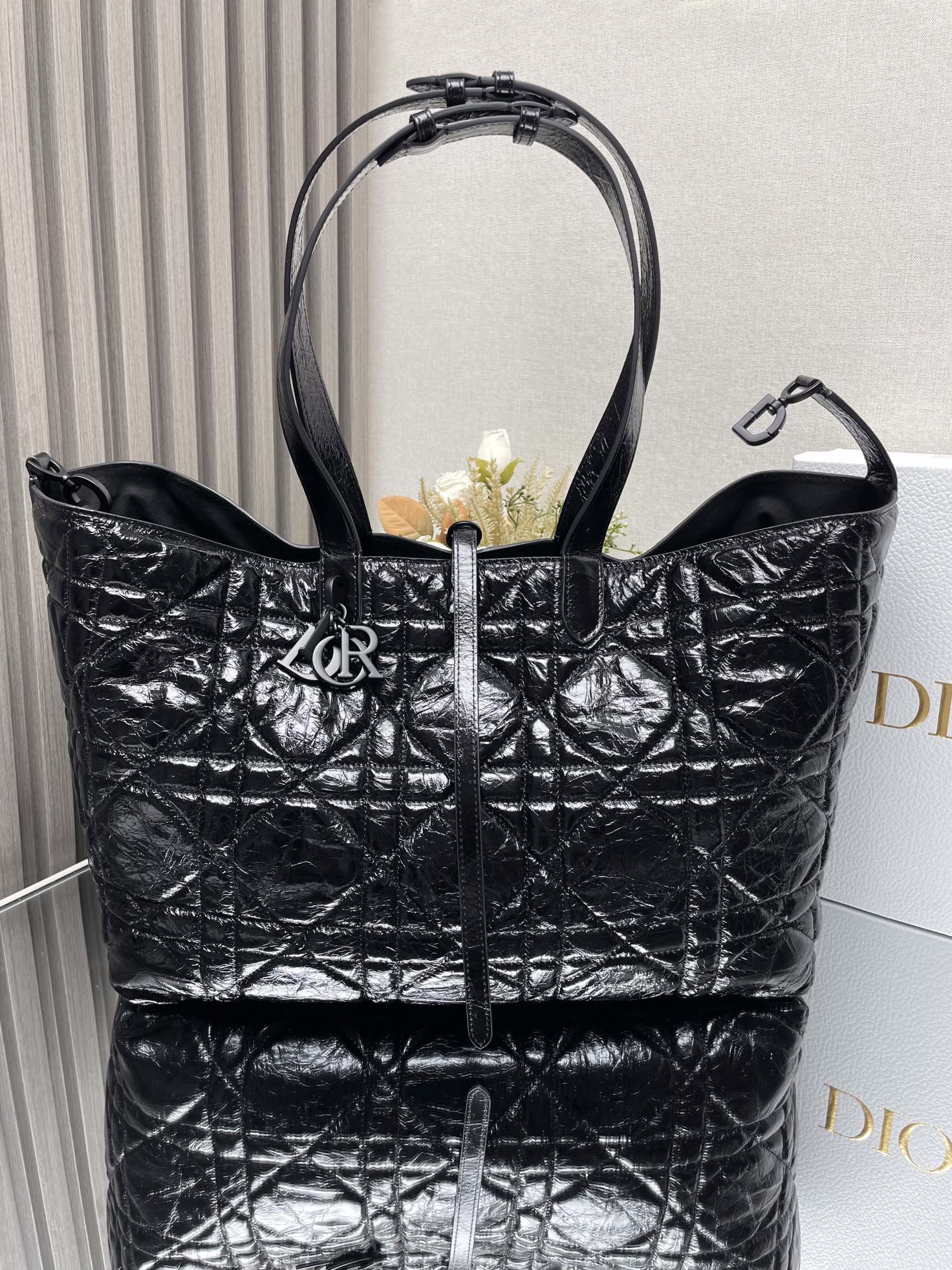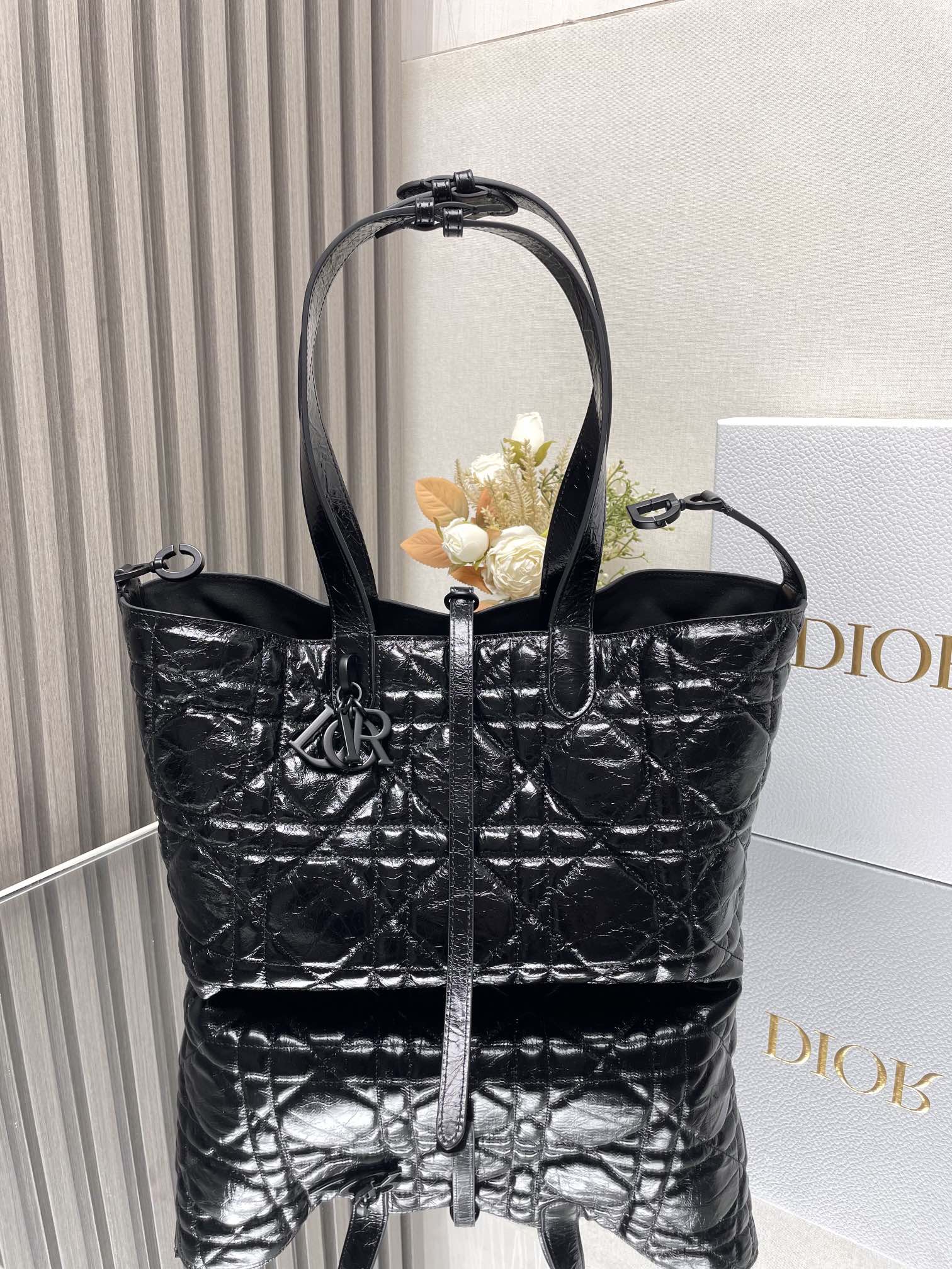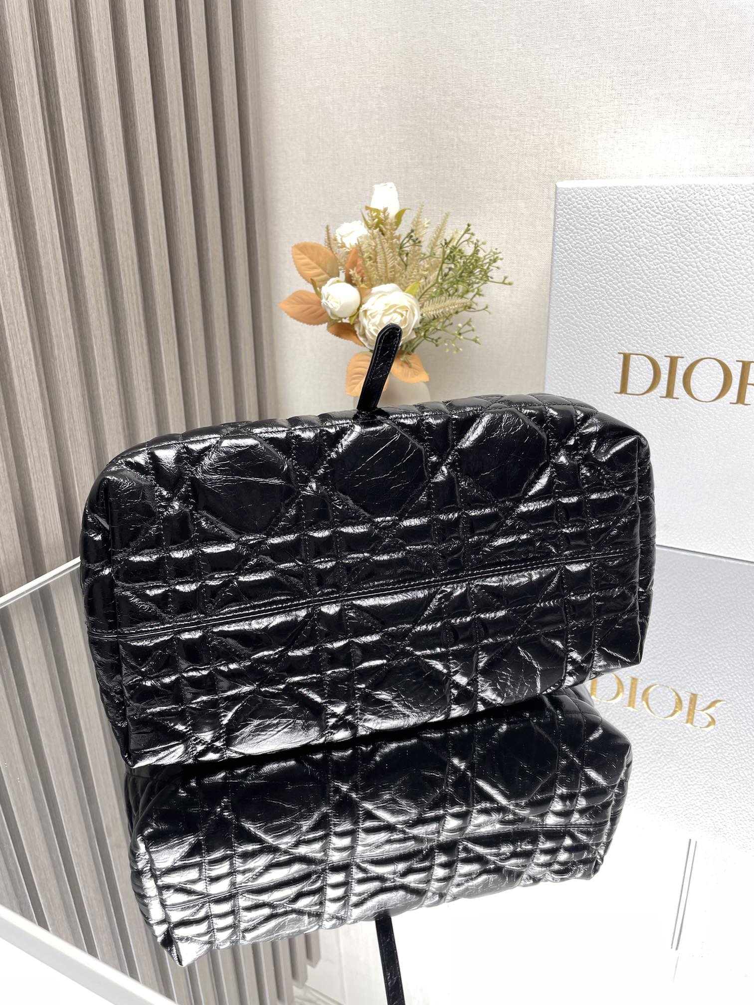 This Dior Toujours handbag made its debut at the Spring/Summer 2012 collection, featuring a casual and functional design. It is carefully made of black cow leather and decorated with large rattan pattern stitching line. The spacious internal compartment is equipped with small bags, which can neatly store various daily necessities. There is also CD Lock letter D knob opening and closing, which can adjust both sides and enhance the style. Leather handle with adjustable detail for easy toting. CD Lock and lace-up open and close DIOR pendant detachable interior pouch Adjustable leather handle with dust bag included