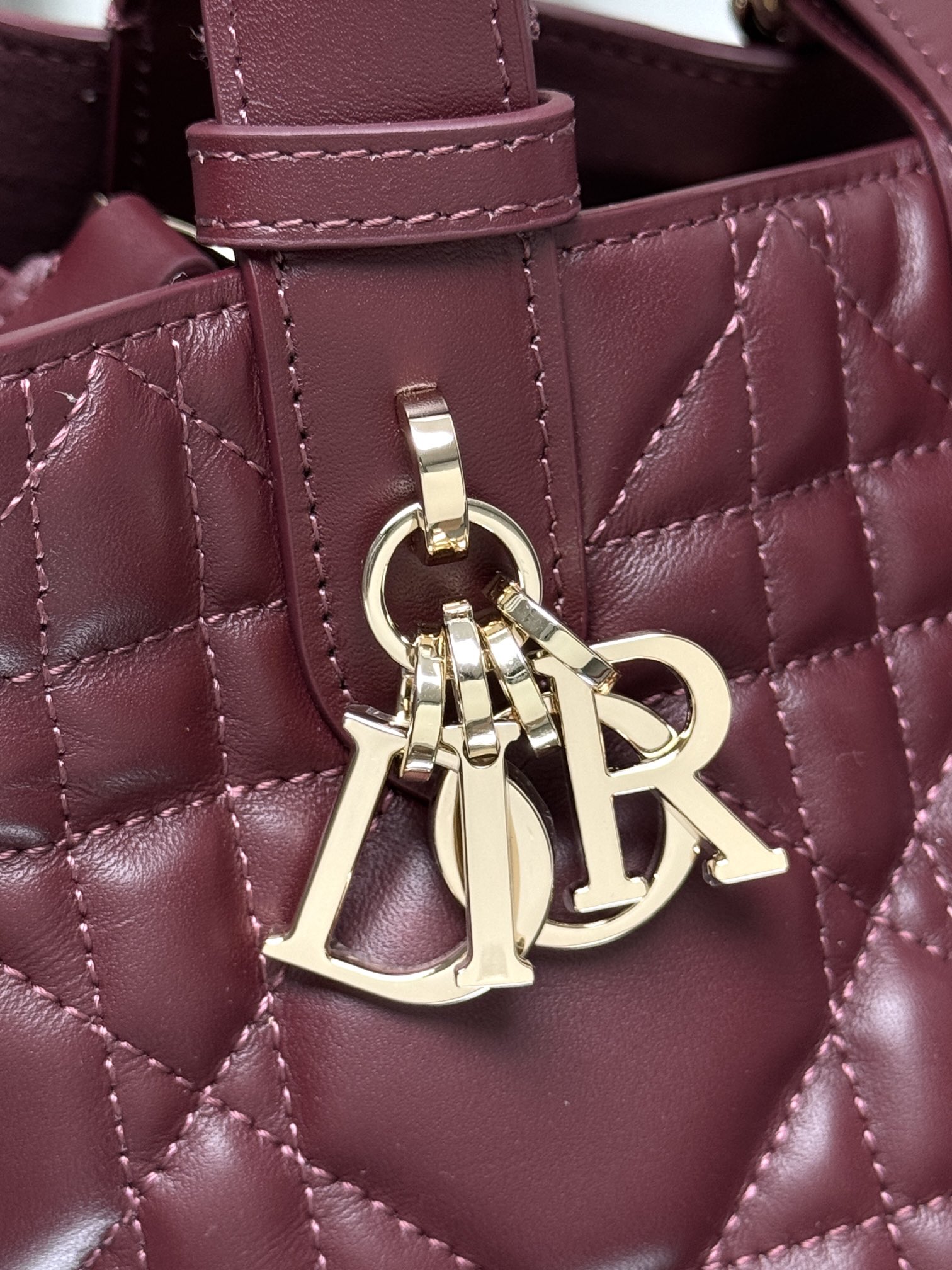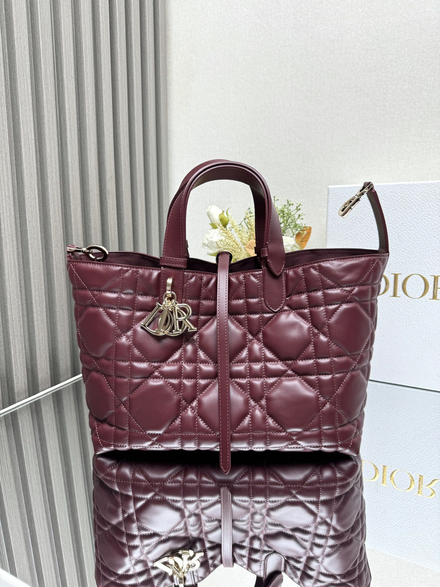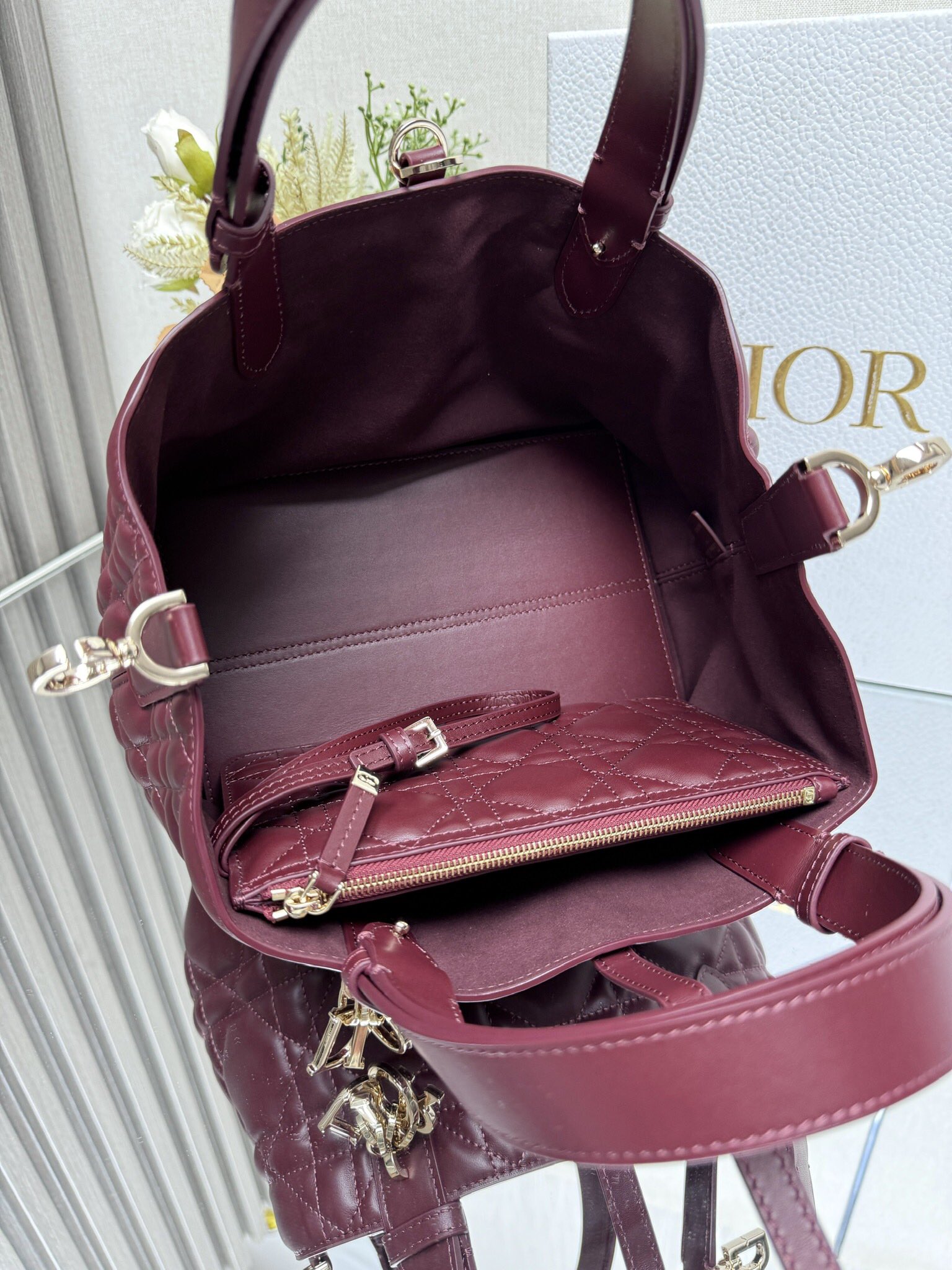 This Dior Toujours handbag made its debut at the Spring/Summer 2012 collection, featuring a casual and functional design. It is carefully made of black cow leather and decorated with large rattan pattern stitching line. The spacious internal compartment is equipped with small bags, which can neatly store various daily necessities. There is also CD Lock letter D knob opening and closing, which can adjust both sides and enhance the style. Leather handle with adjustable detail for easy portability. CD Lock and lace-up open and close DIOR pendant detachable interior pouch Adjustable leather handle includes dust bag
