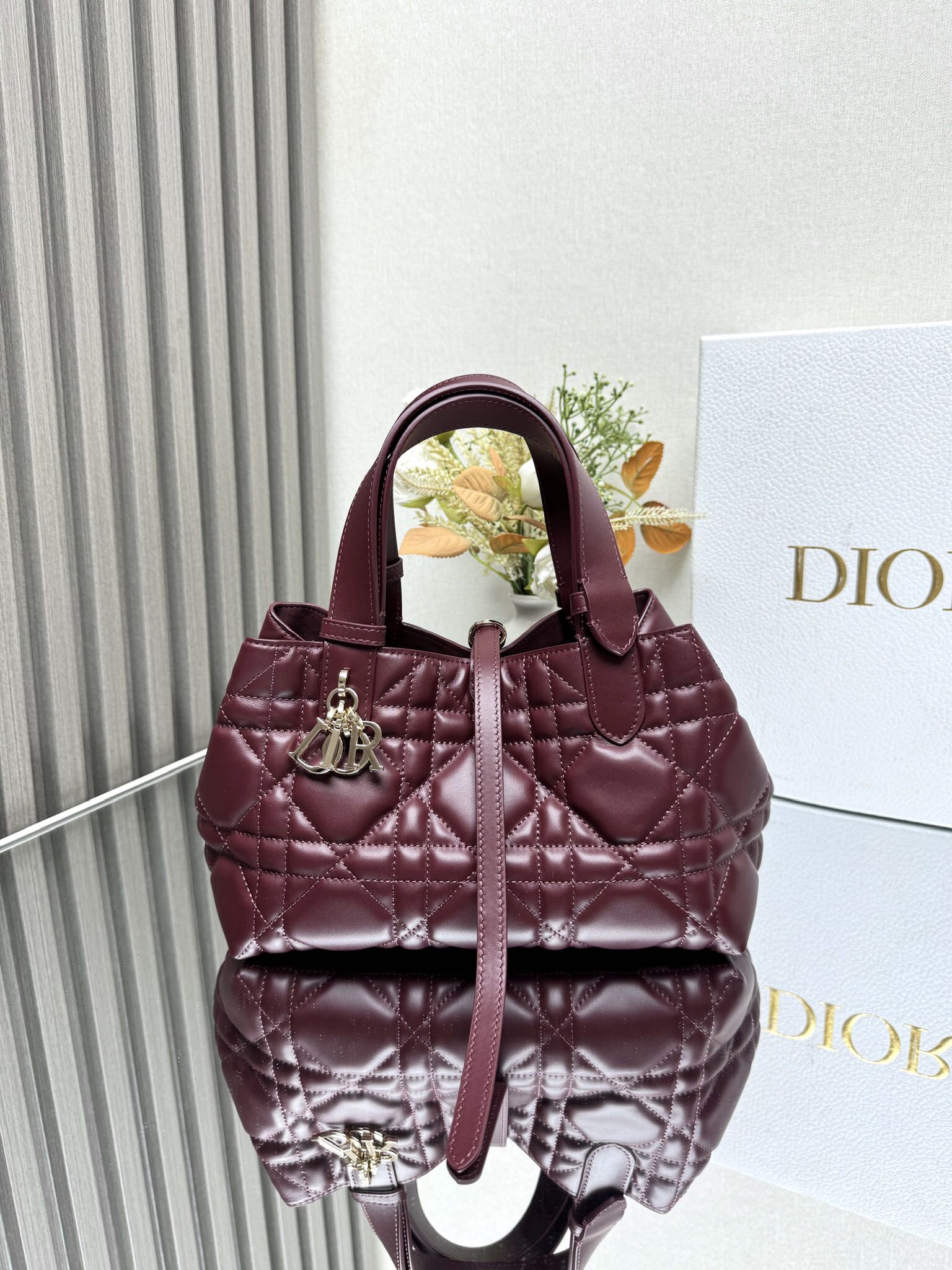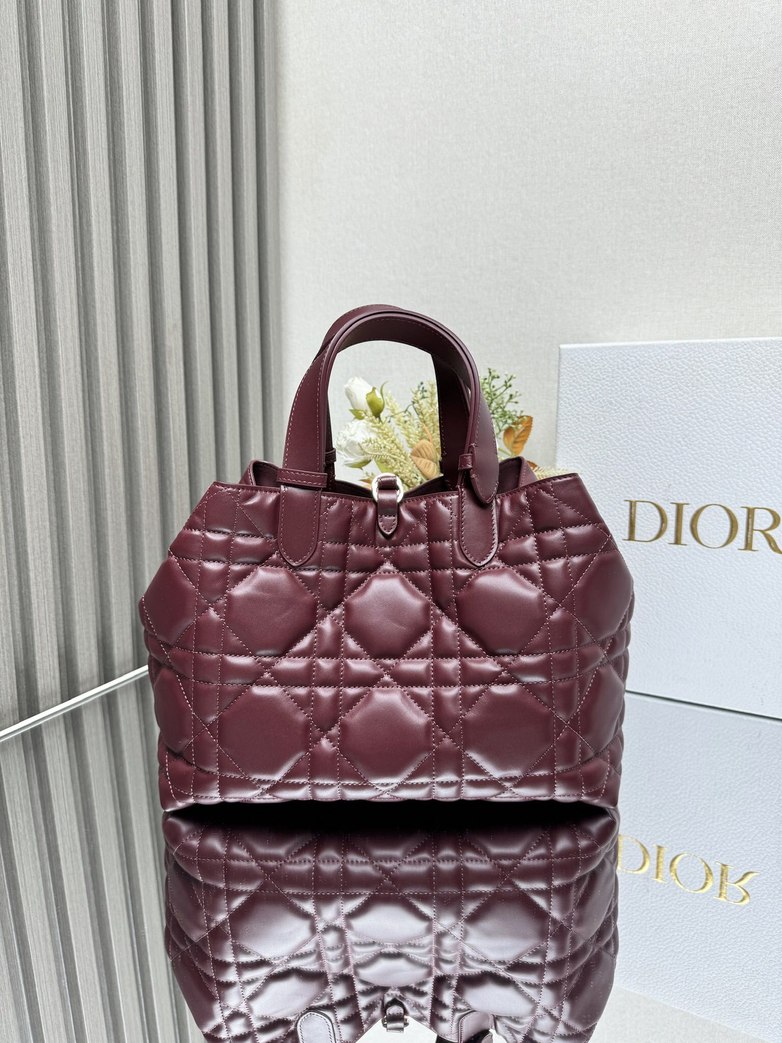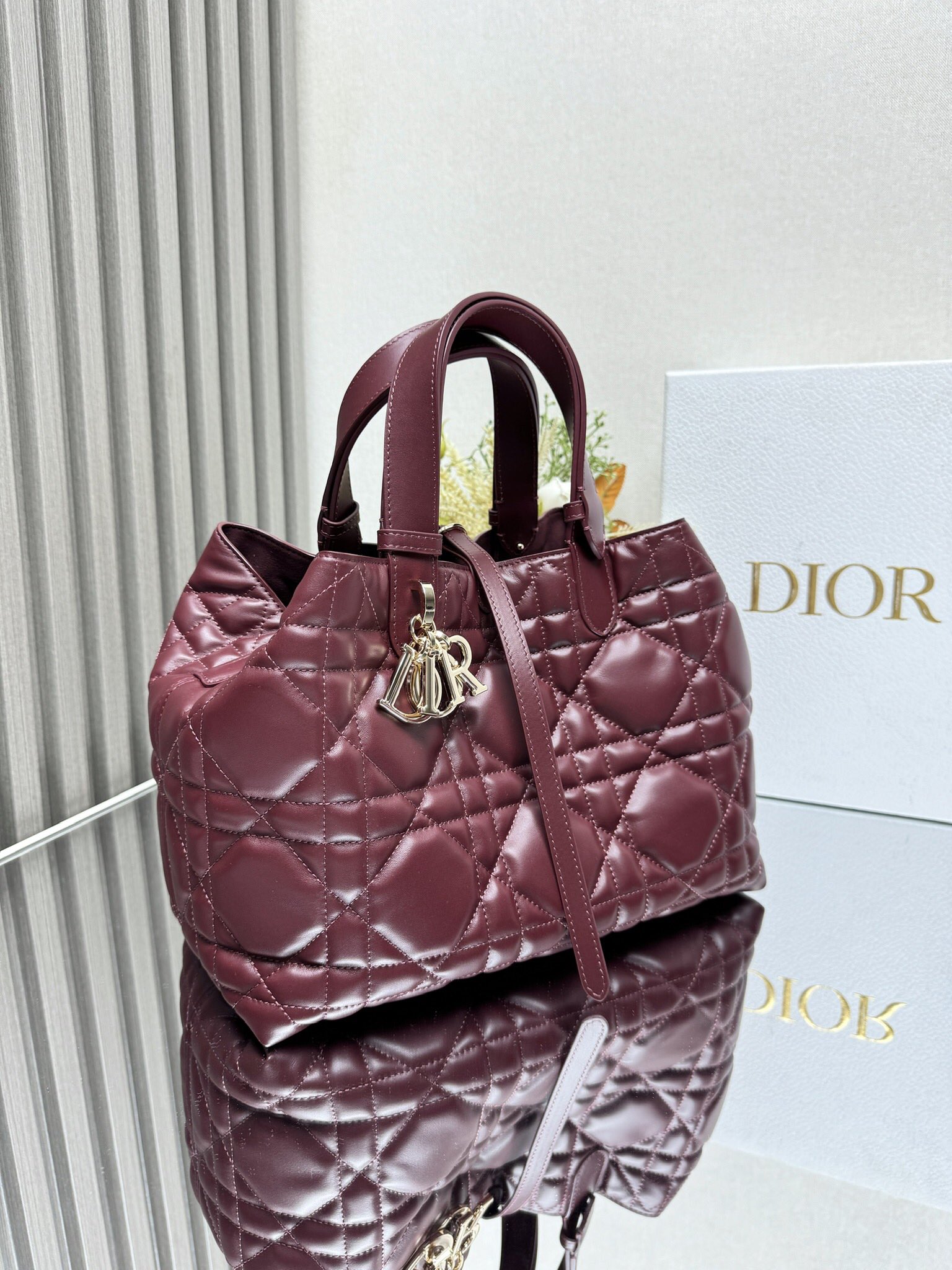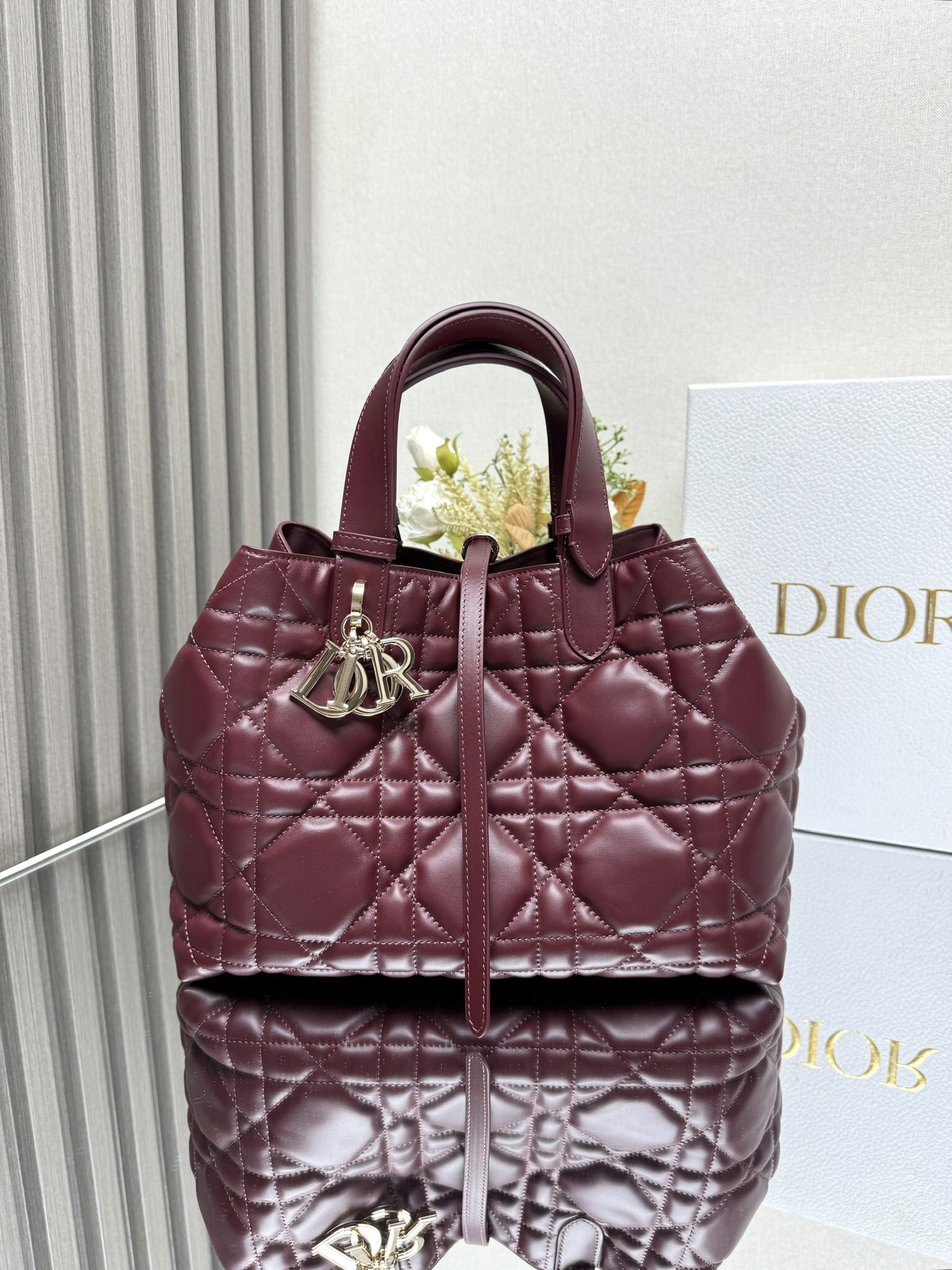 This Dior Toujours handbag made its debut at the Spring/Summer 2012 collection, featuring a casual and functional design. It is carefully made of black cow leather and decorated with large rattan pattern stitching line. The spacious internal compartment is equipped with small bags, which can neatly store various daily necessities. There is also CD Lock letter D knob opening and closing, which can adjust both sides and enhance the style. Leather handle with adjustable detail for easy portability. CD Lock and lace-up open and close DIOR pendant detachable interior pouch Adjustable leather handle includes dust bag