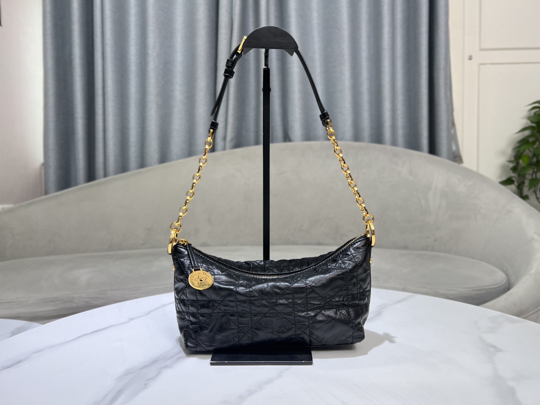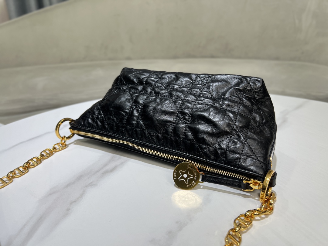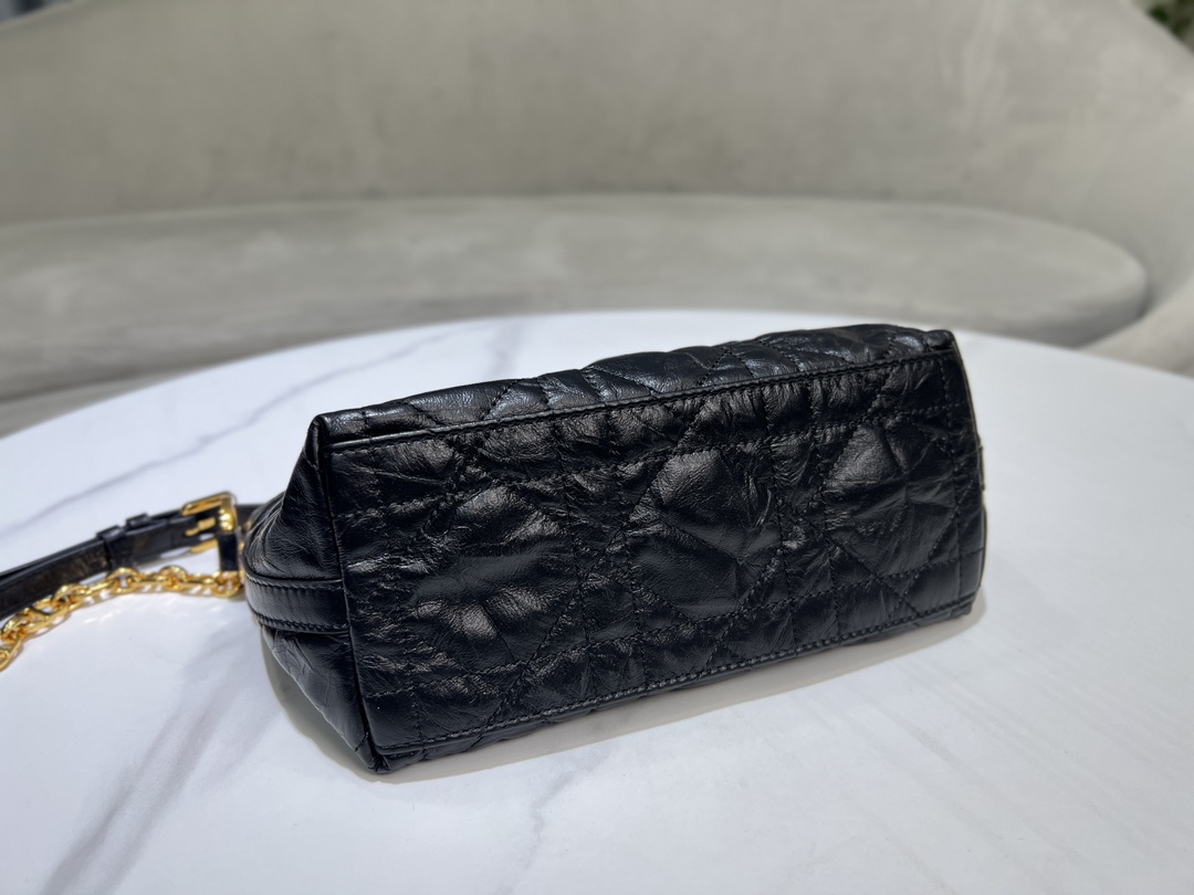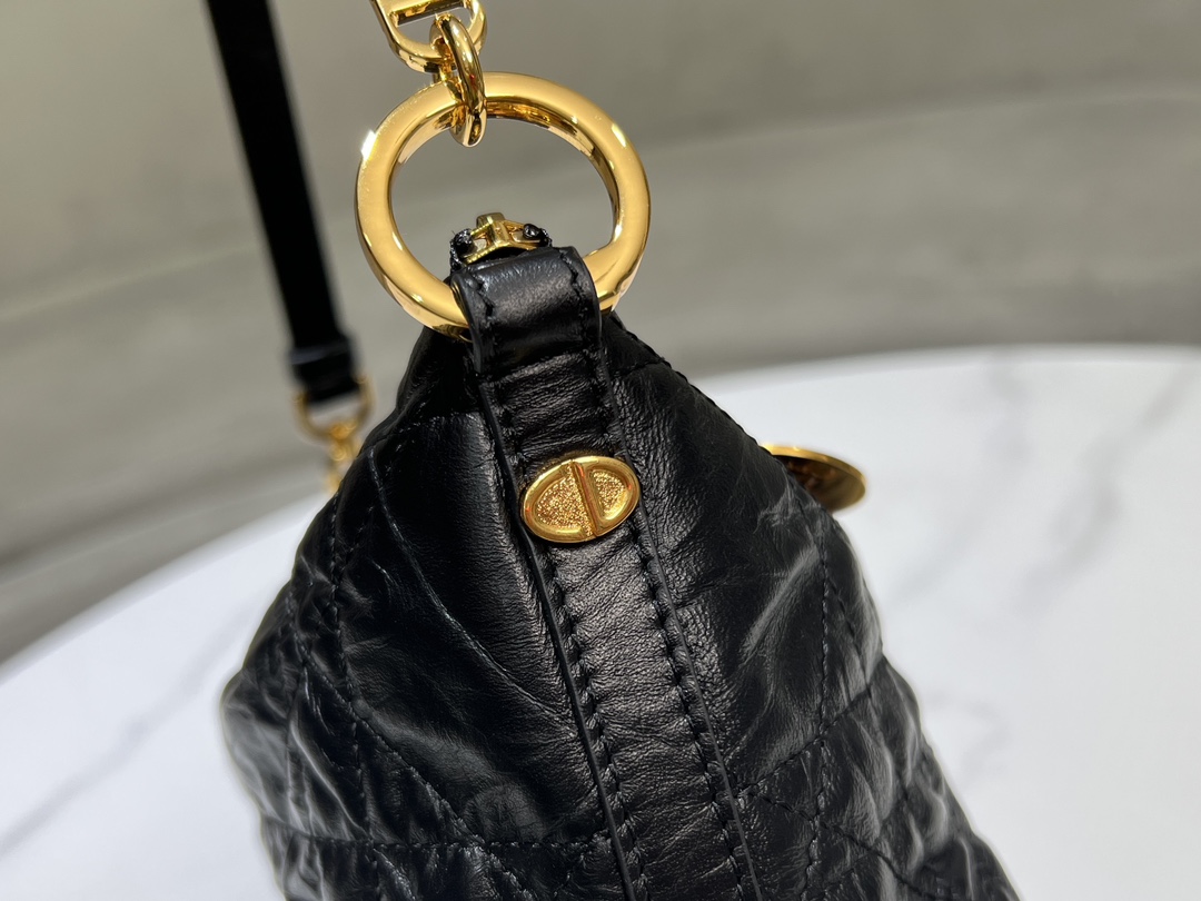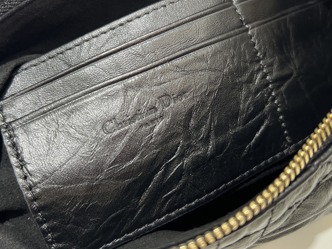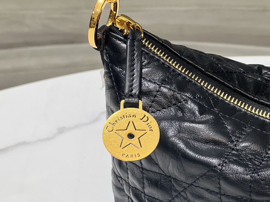 Design: Features a spacious interior with a zip closure, adorned with a round charm engraved with the Christian Dior Paris logo and the classic Dior star emblem. The side is embellished with delicate CD rivets, adding a touch of sophistication.