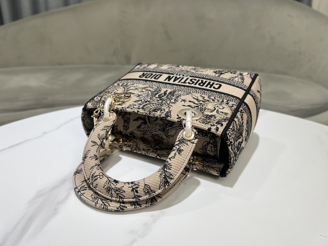 This Lady D-Joy handbag embodies Dior's profound insight into elegance and modern style. The whole body is decorated with embroidery, with the signature beige and black Soleil Ruy print of this season, a new interpretation of Dior's classic pattern, the sun and the moon appear together to create a flower shape representing the four seasons. A metal D.I.O.R. pendant with a light gold finish adds a touch of flair to the delicate silhouette. Medium style with detachable embroidered wide shoulder strap, portable or crossbody.