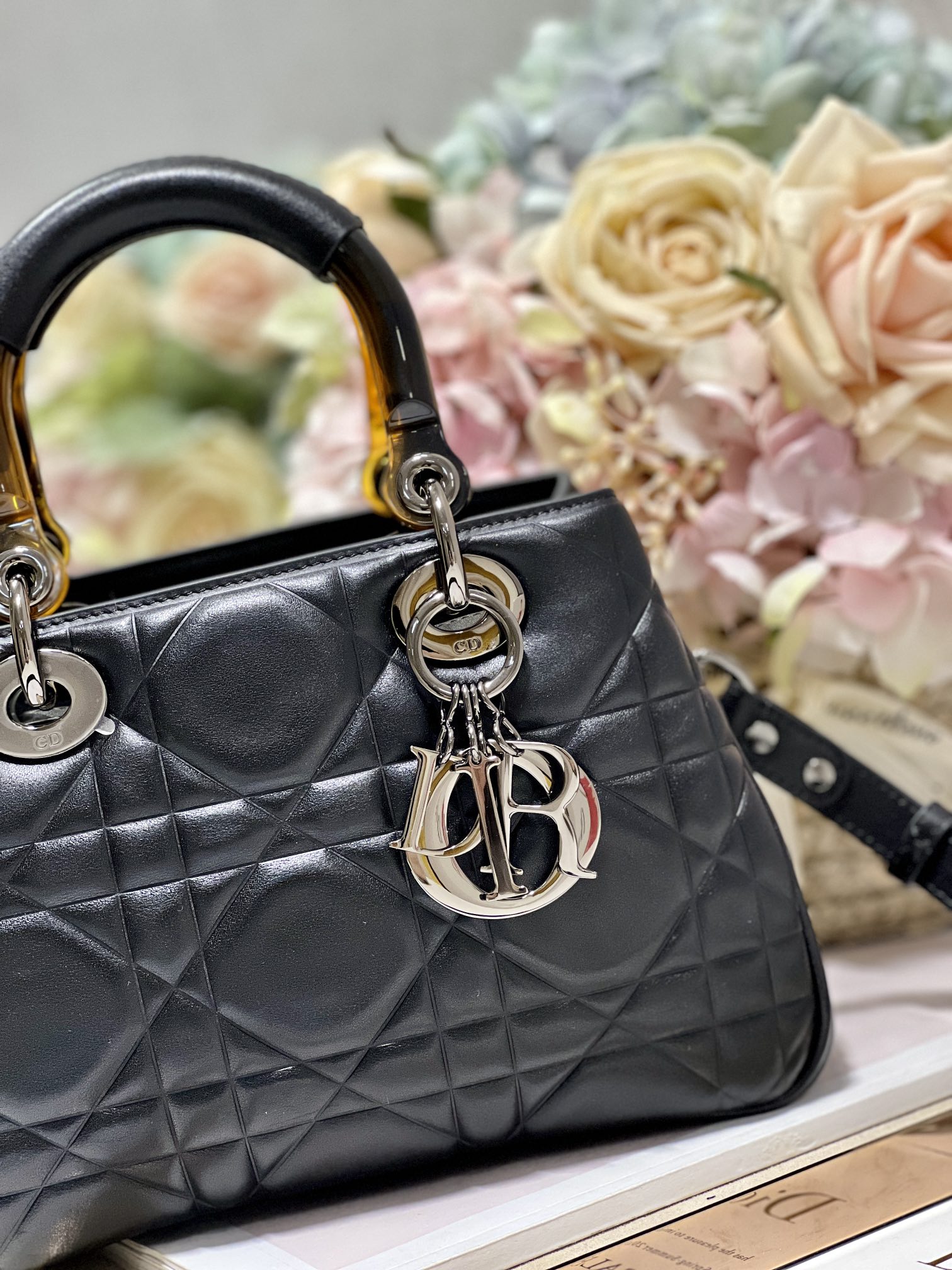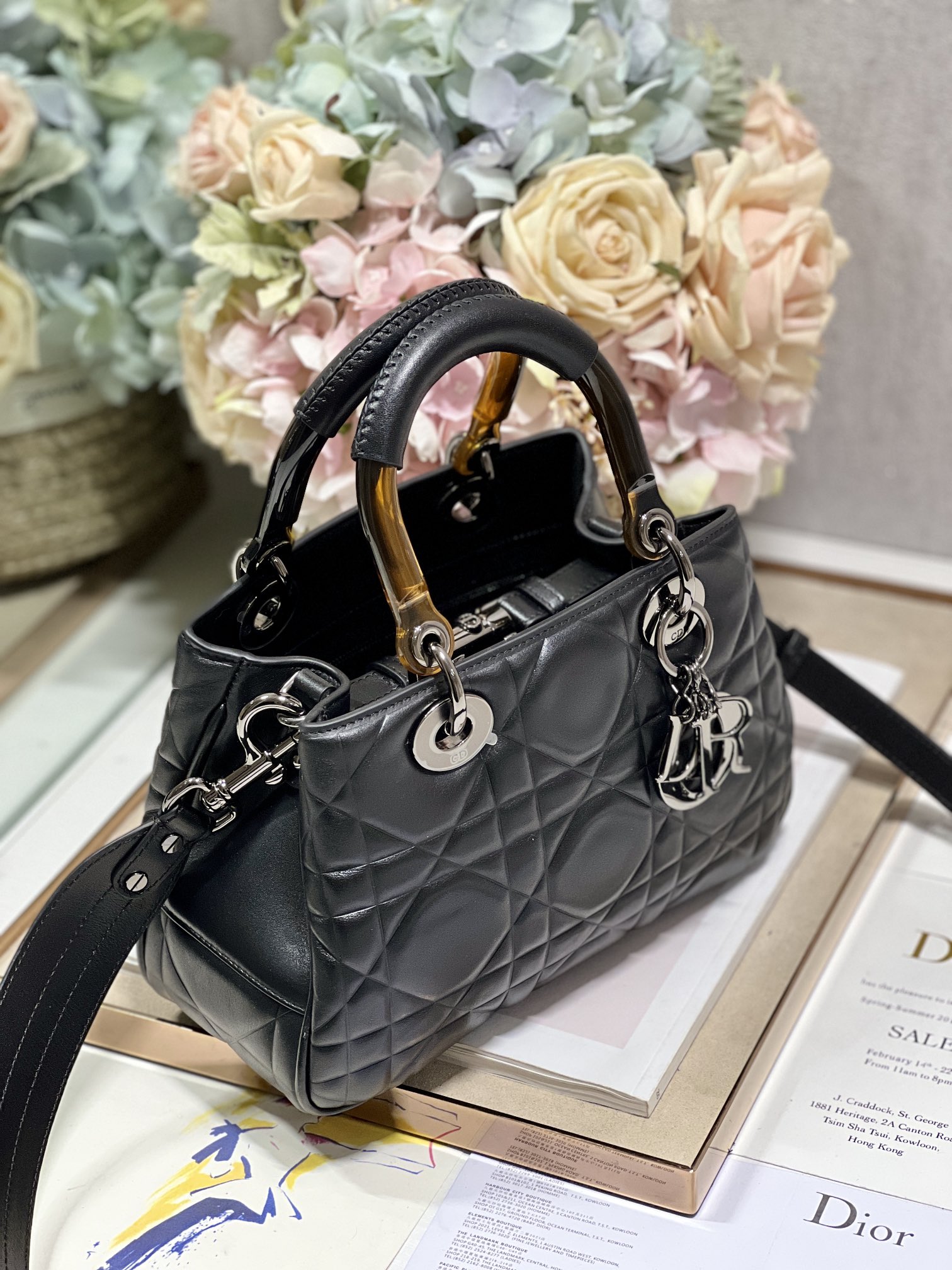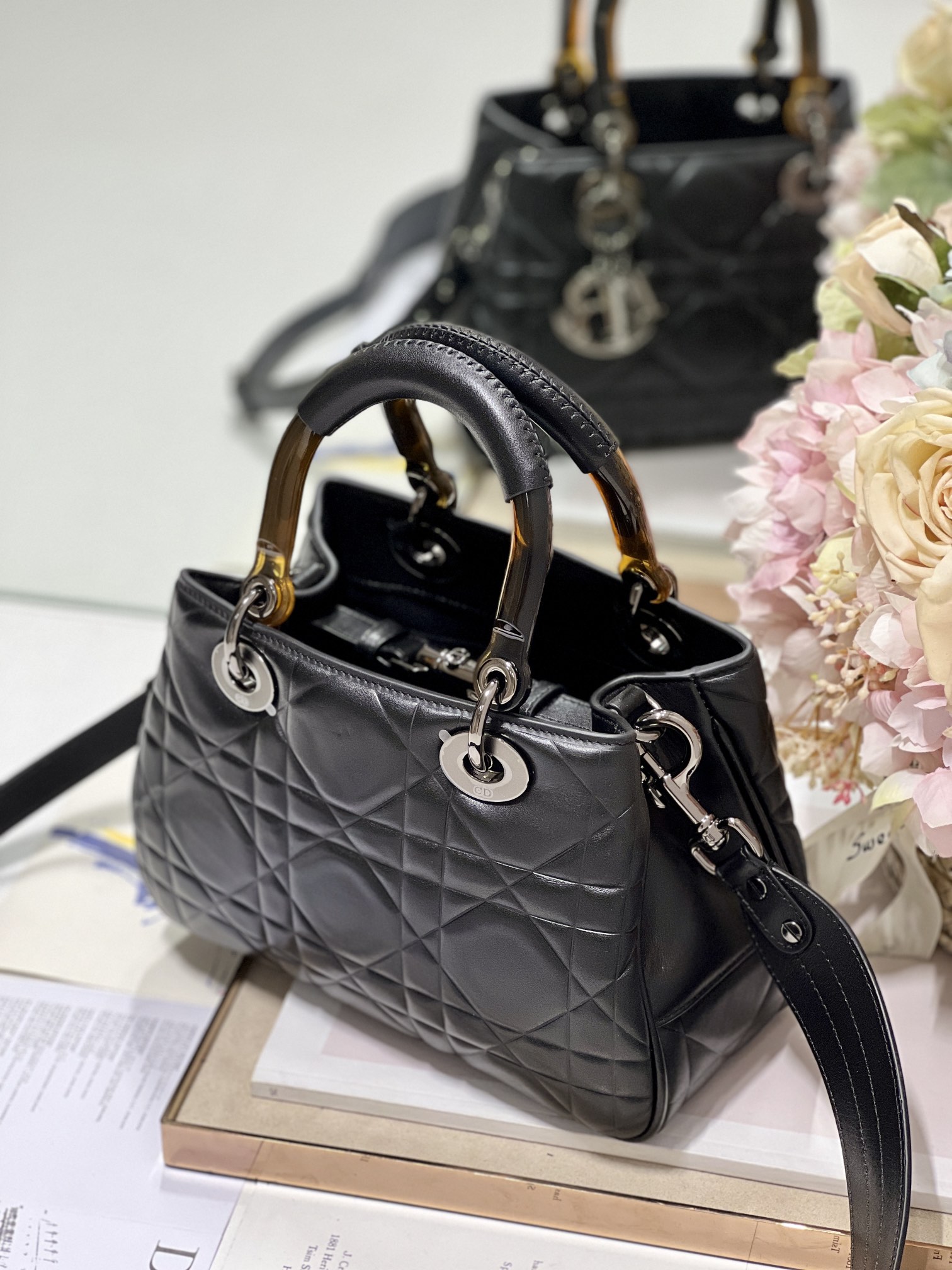 (Dior) 💕New Lady Dior 95·22 Diana bag "black gun buckle agate handle" imported cowhide leather plaid quilted oversized cannage pattern! This Lady Dior handbag is the latest runway model, with a new design of gunmetal metal handles, showing a fashionable style. Carefully crafted from imported cowhide leather, it features a distinctive quilted oversized cannage pattern and two spacious compartments, including a zippered pocket for storing valuables. Detachable high-grade leather shoulder strap, can be worn on one shoulder or cross-body, with handle for easy carrying, a high-end combat bag: model: M0062, size: 24*16.5*9.5cm