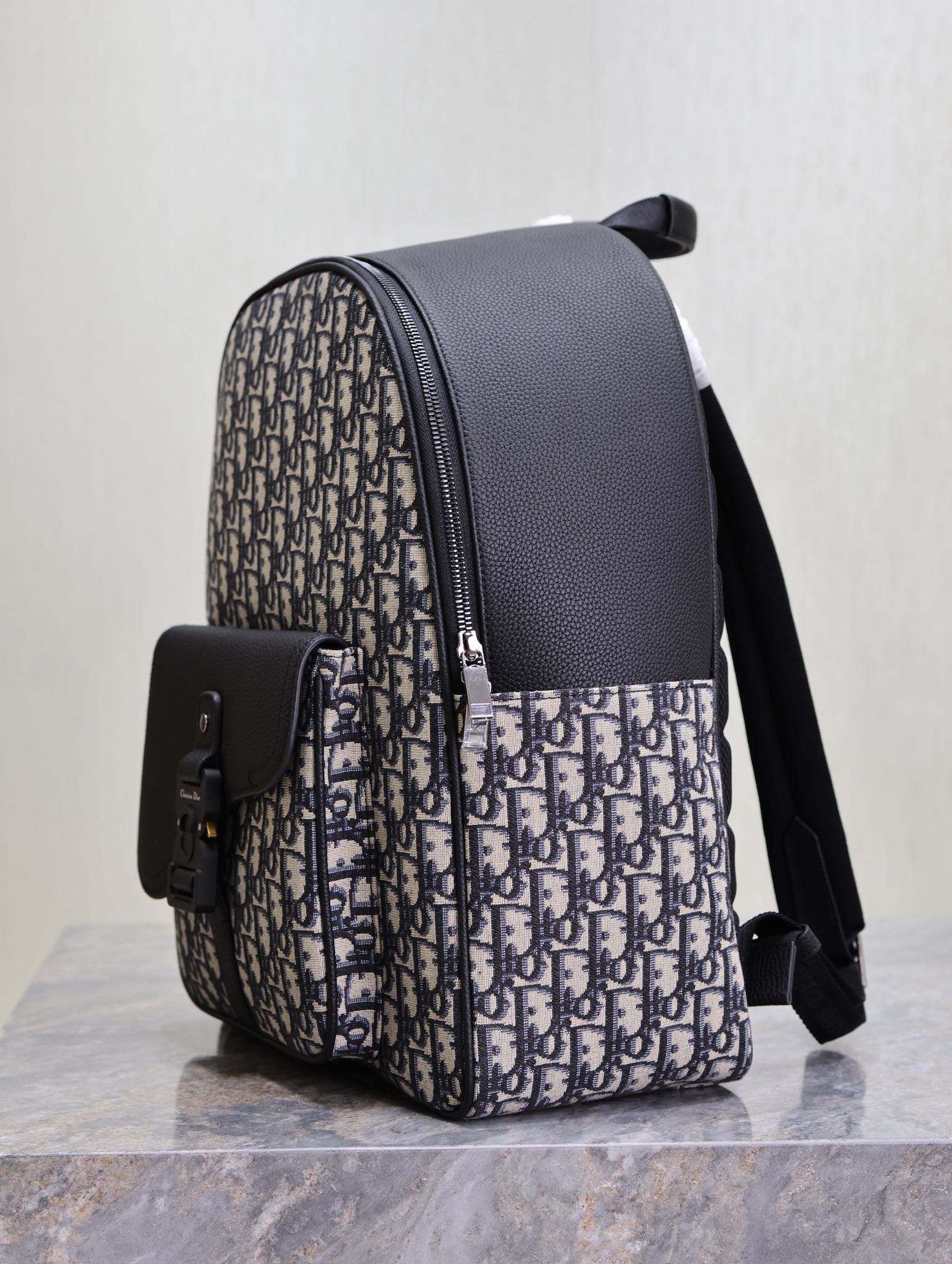 This saddle zipper backpack is new to the men's Winter 2014 collection and features a stylish and original design that highlights the saddle style. Crafted in beige and black Oblique printed fabrics with black grated cow leather details. The space is spacious, with a compartment to store a variety of everyday items, and the front saddle flap pocket with the Christian Dior logo aluminum buckle can be used to store wallets, keys, headphones or mobile phones for easy access. Practical and versatile, is the finishing touch of all kinds of modeling