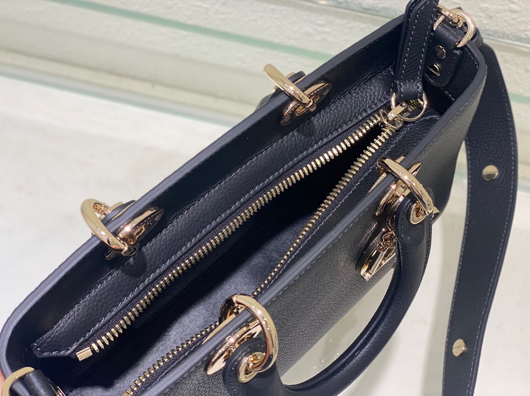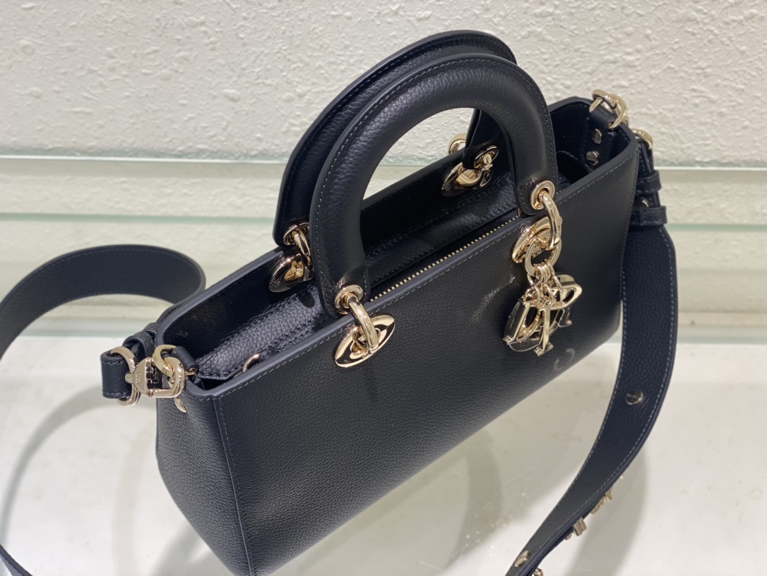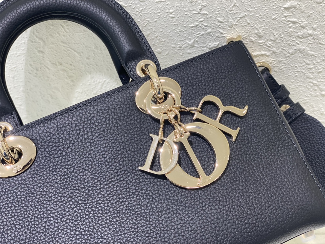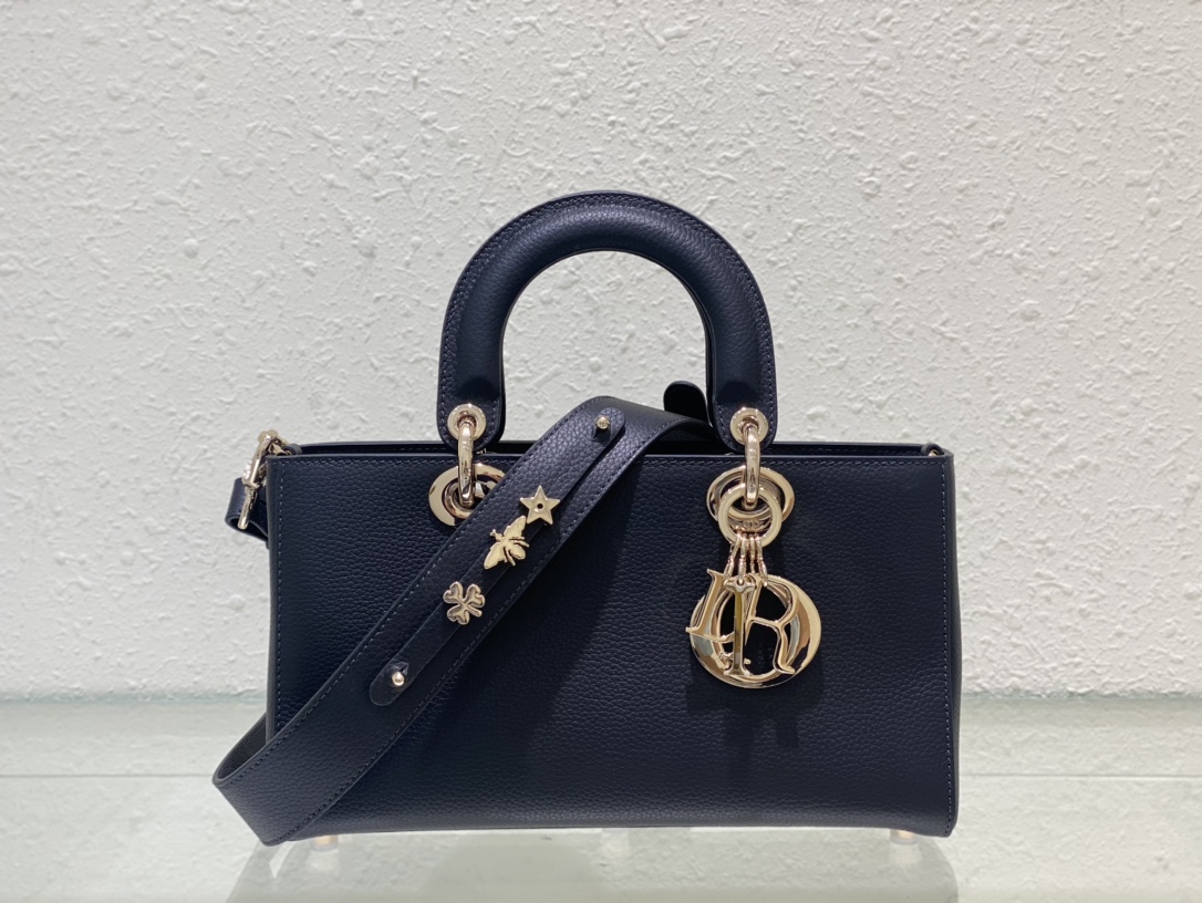 New this season, the Lady D-Sire My ABCDior bag was unveiled at the Spring/Summer 2024 ready-to-wear collection show, and is inspired by the classic elegance of the Lady Dior bag. Crafted from black pebbled calfskin, it has been reinterpreted to highlight the casual style and create an urban look. It is embellished with oversized rattan stitching and paired with a matte metal D.I.O.R. charm in the same tone, adding a modern style. Small size, unique design, shoulder strap can be decorated with classic badges to show personality, can be carried by hand or crossbody.