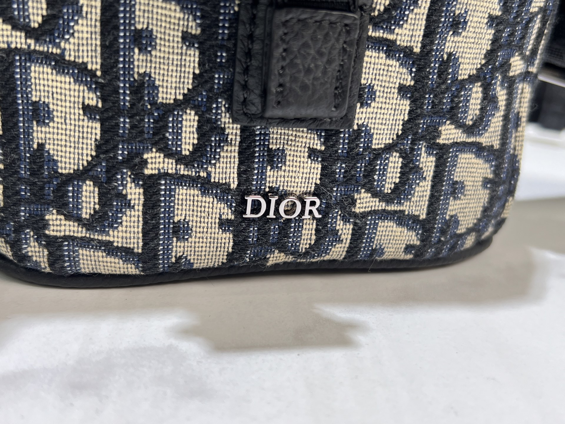 Adjustable nylon jacquard with Christian Dior logo and cowhide shoulder strap.