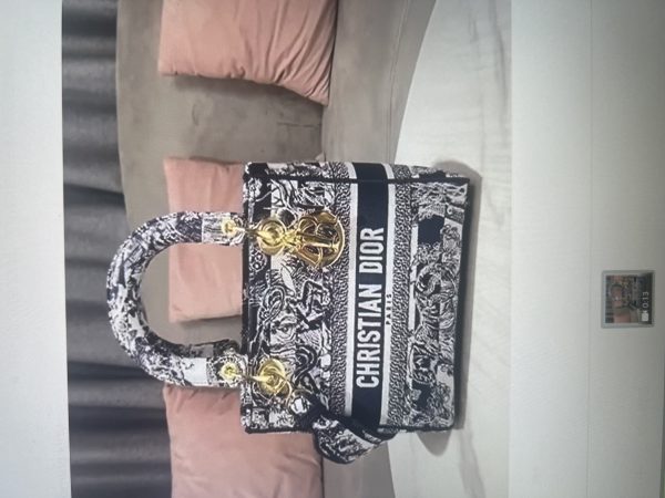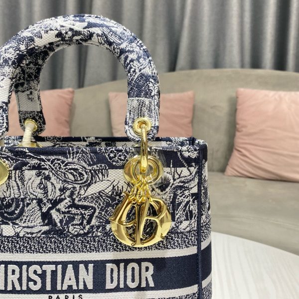 The front is decorated with the “CHRISTIAN DIOR” logo and paired with a textured light gold-finish metal “D.I.O.R.” pendant, adding a touch of agility to the exquisite silhouette.
