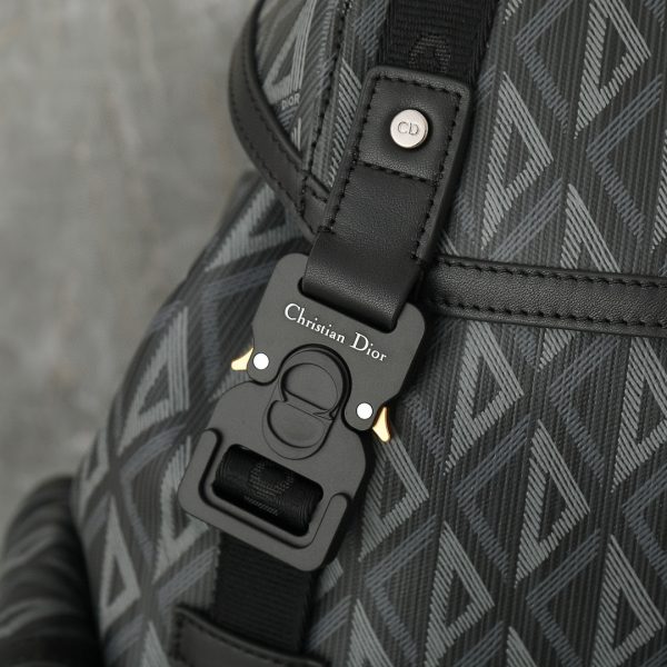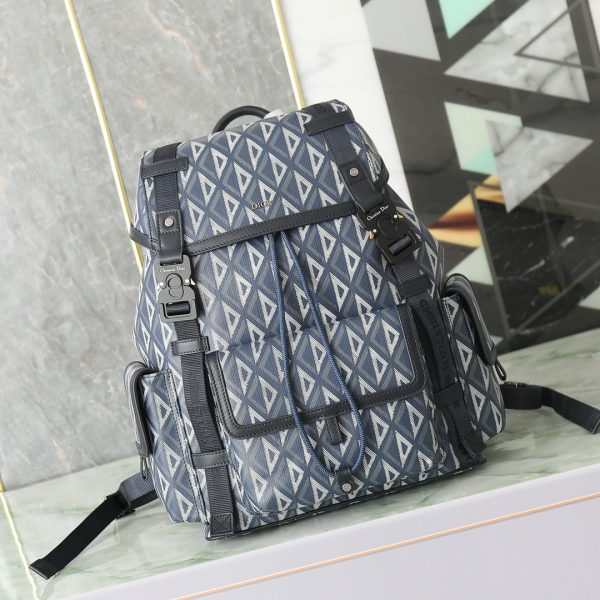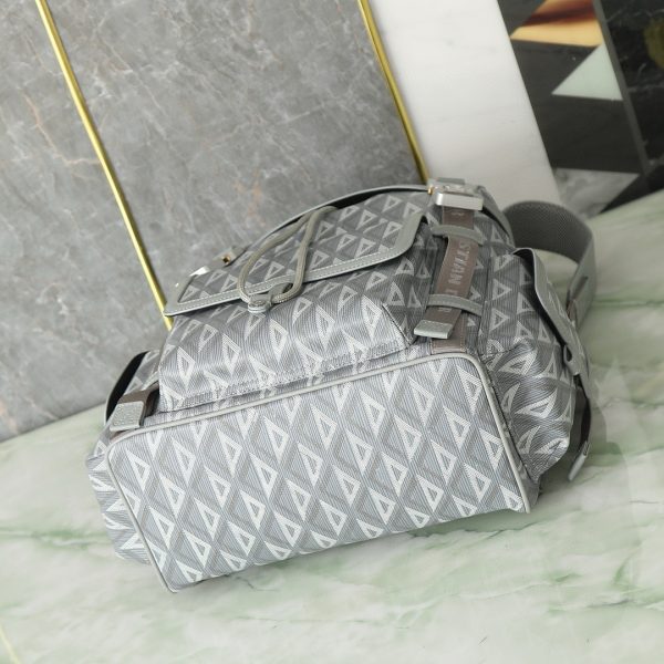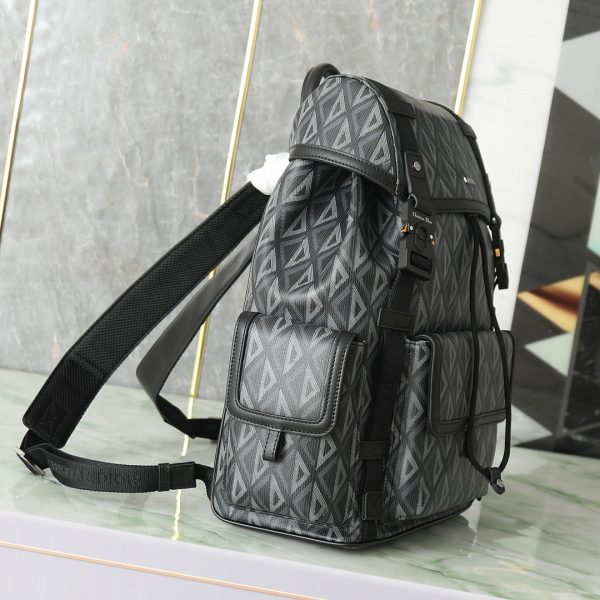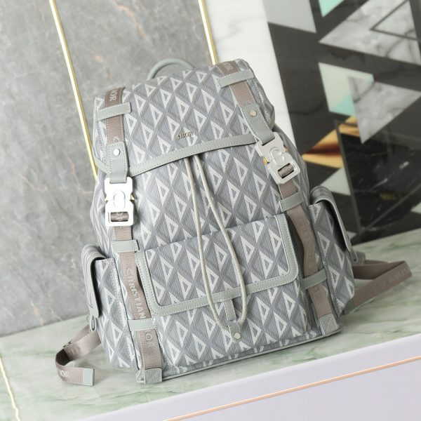 The Dior Hit The Road backpack combines modern style with Dior’s couture spirit. Crafted in Dior Gray CD Diamond canvas, inspired by the Dior archives, it is finished with smooth calf leather details. Featuring two Christian Dior signature nylon jacquard straps, main compartment, front flap pocket and two side flap pockets. The medium size is practical and versatile, making it the perfect finishing touch for any casual outfit.