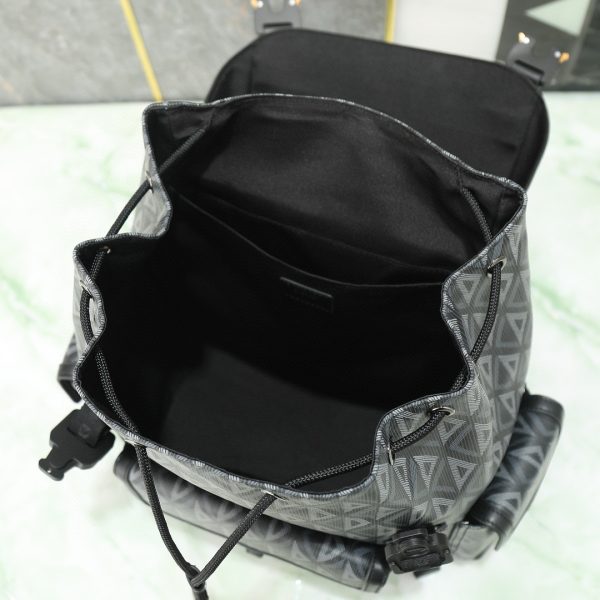Main compartment with flap, aluminum buckle with Christian Dior signature and drawstring Internal flat computer compartment