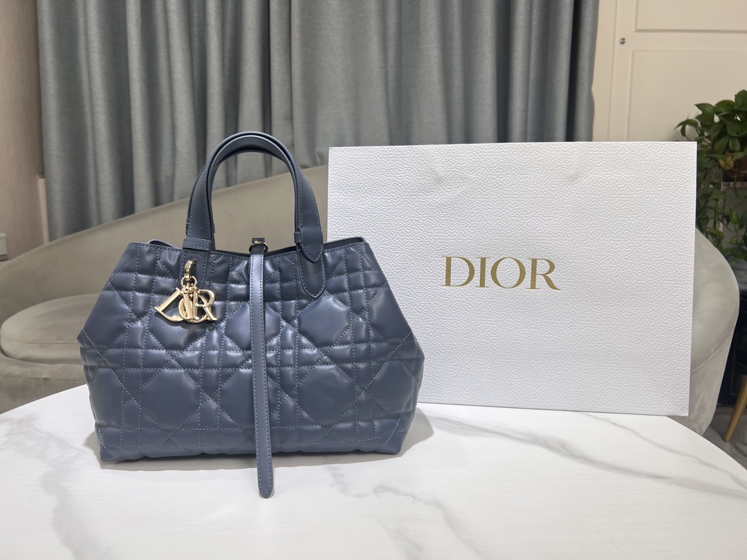 This Di, or Toujours handbag was showcased at the Spring/Summer 2012 collection, featuring a relaxed and functional design. It is carefully made of denim blue cow leather and decorated with a large rattan jacquard stitching line. The spacious internal compartment is equipped with a small bag to neatly store a variety of daily necessities. There is also a C D Lock letter D knob opening and closing, which can adjust both sides to enhance the style. Leather handle with adjustable detail for easy toting. C D Lock and tie open and close DI, OR sling removable internal pouch Adjustable leather handle includes dust bag
