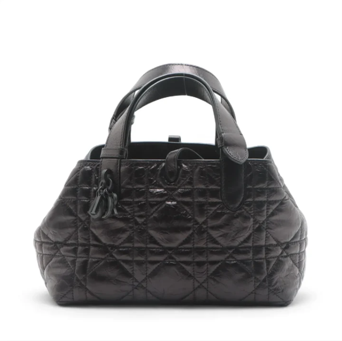 Dior Toujours Vertical Nano Tote Bag Black Macrocannage Crinkled Calfskin