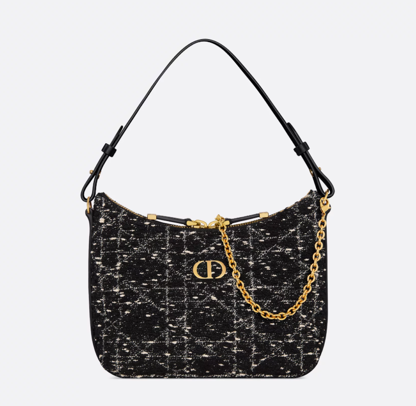 Dior Miss Caro Diorling Mini Bag with Chain Black Cannage Tweed