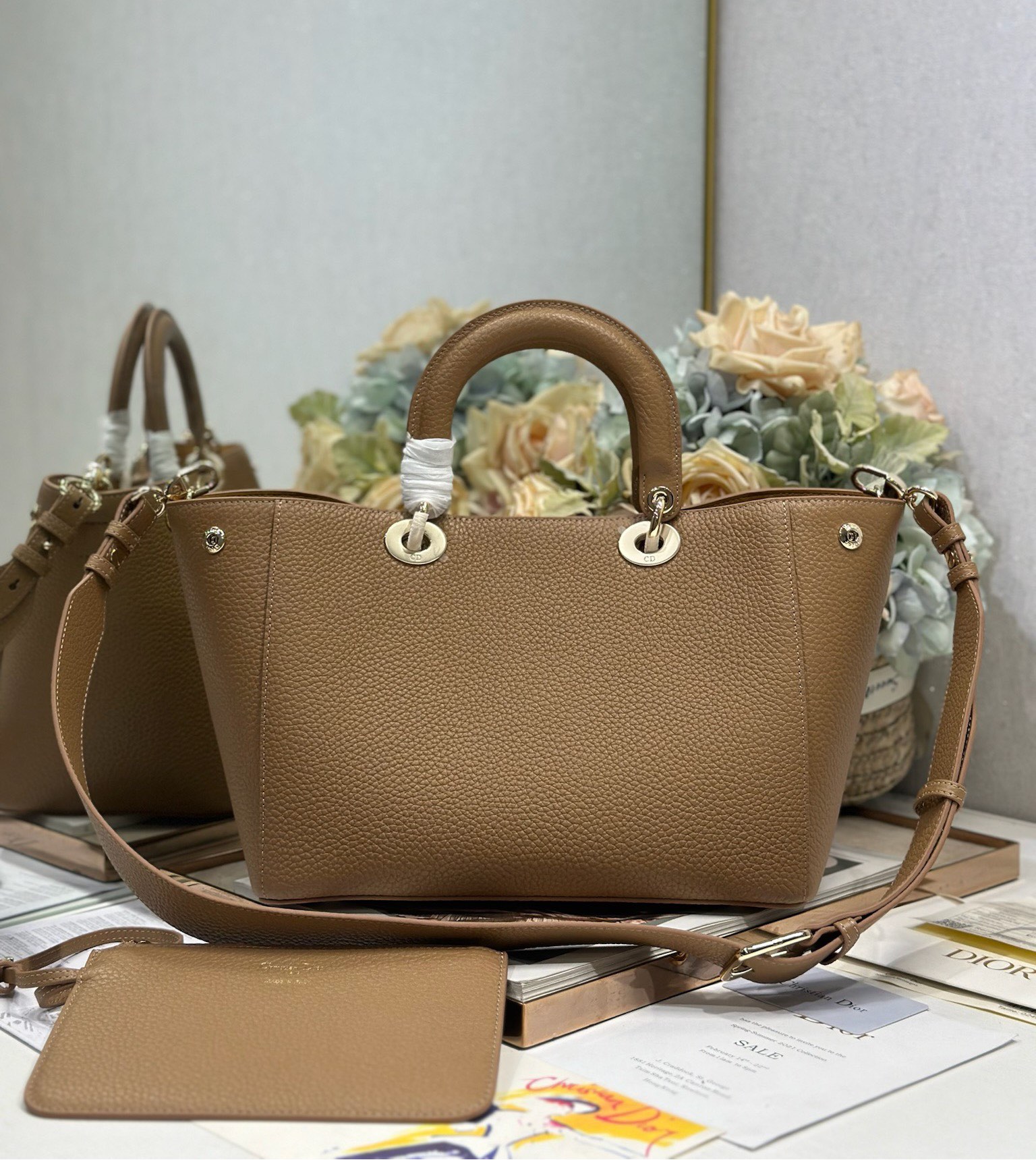 Dior Toujours Bag in Brown Grained Calfskin