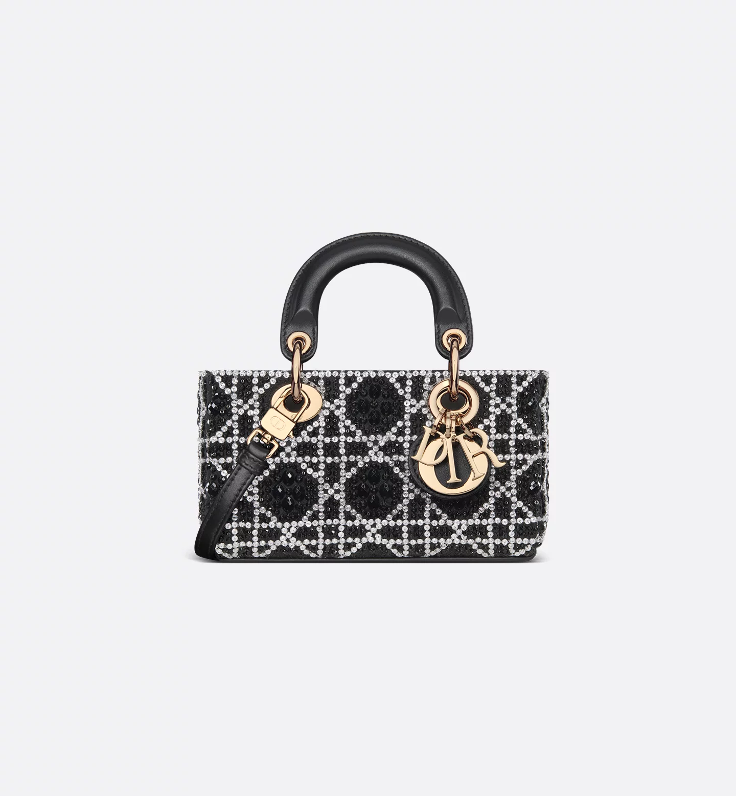 Lady D-Joy Micro Bag Cannage Embroidery with Black Beads and Silver-Tone Strass