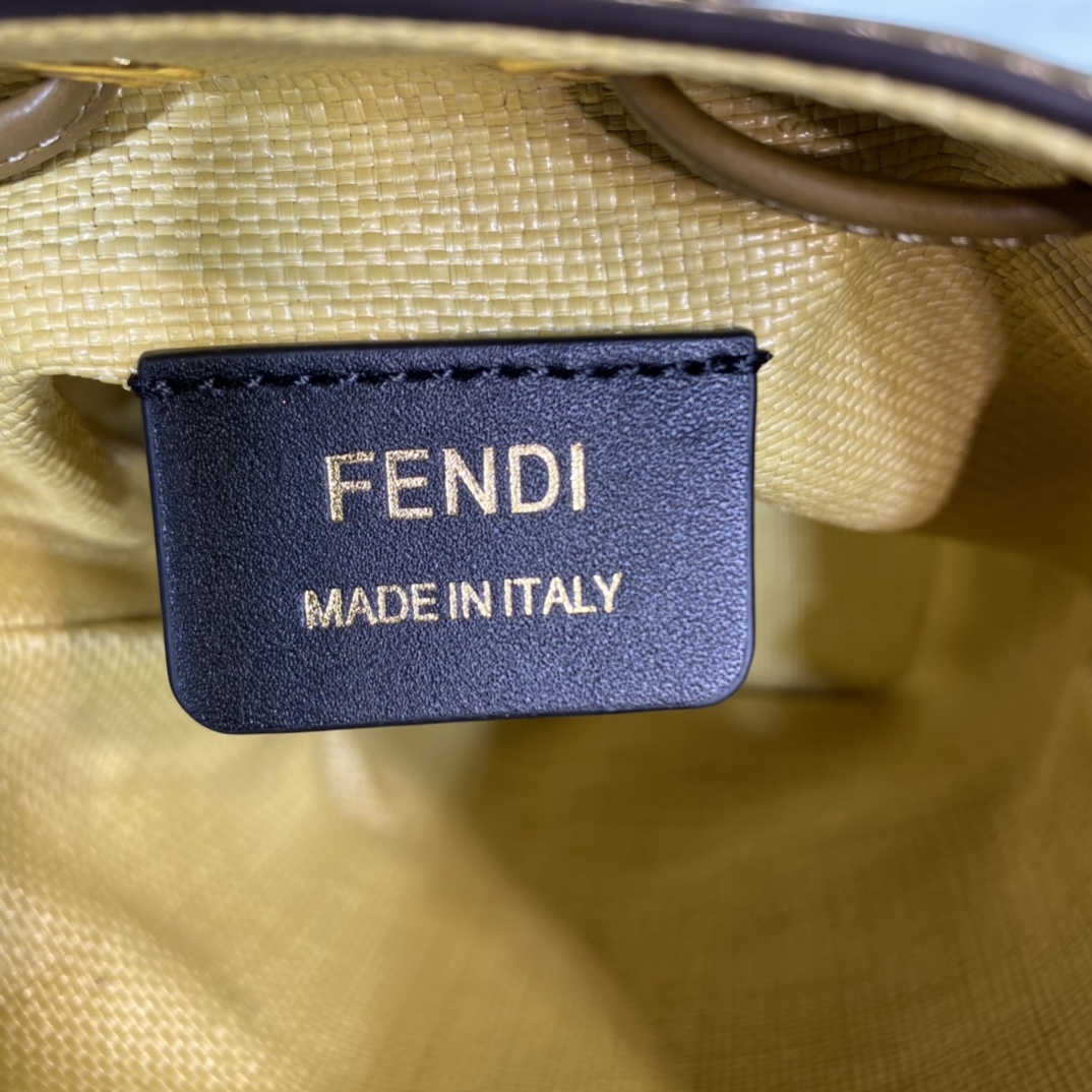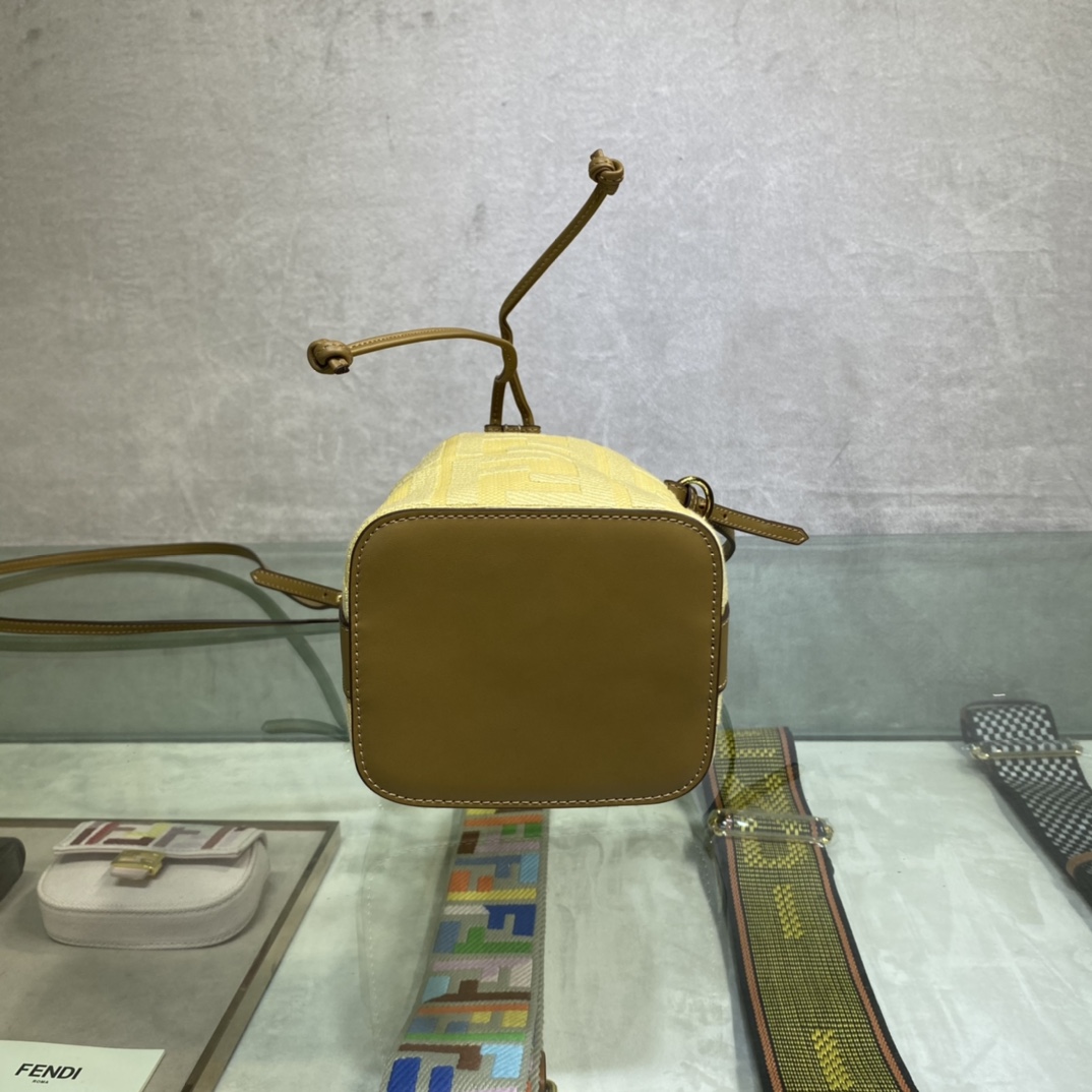 The mini bucket bag is perfectly sized for your essentials, making it an essential accessory for daily outings. Its combination of leather and fabric ensures that it is lightweight and easy to carry. The Mon Tresor mini bucket bag features a drawstring closure and Fendi metal logo decoration. It comes with two detachable shoulder straps—one long and one short—allowing it to be carried on the shoulder or worn crossbody. Made from white denim with embroidered FF logos, it has natural-colored leather accents and gold metal hardware. This bag offers a high-end, sophisticated feel.
