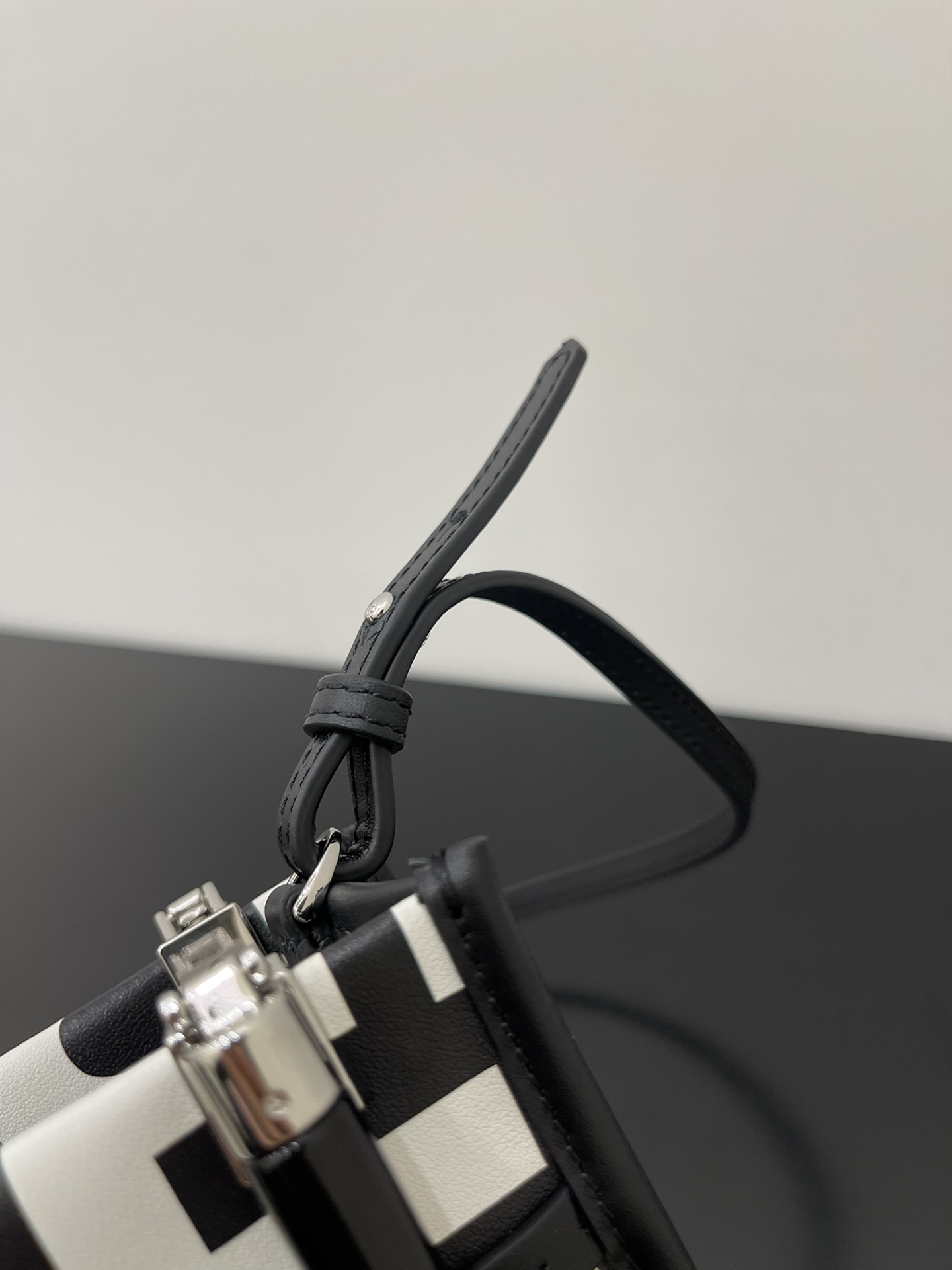 The FENDI Sunshine Small Tote is made from printed leather and features the black and white Fendi Roma logo, reinterpreted by Marc Jacobs in an oversized design. It includes a rigid resin glass handle and a lined interior compartment, accented with matching leather trims and silver metal hardware. The tote is adorned with the Fendi Roma Marc Jacobs New York City logo. It comes with two top handles and an adjustable, detachable slim shoulder strap, allowing for hand or shoulder carry.