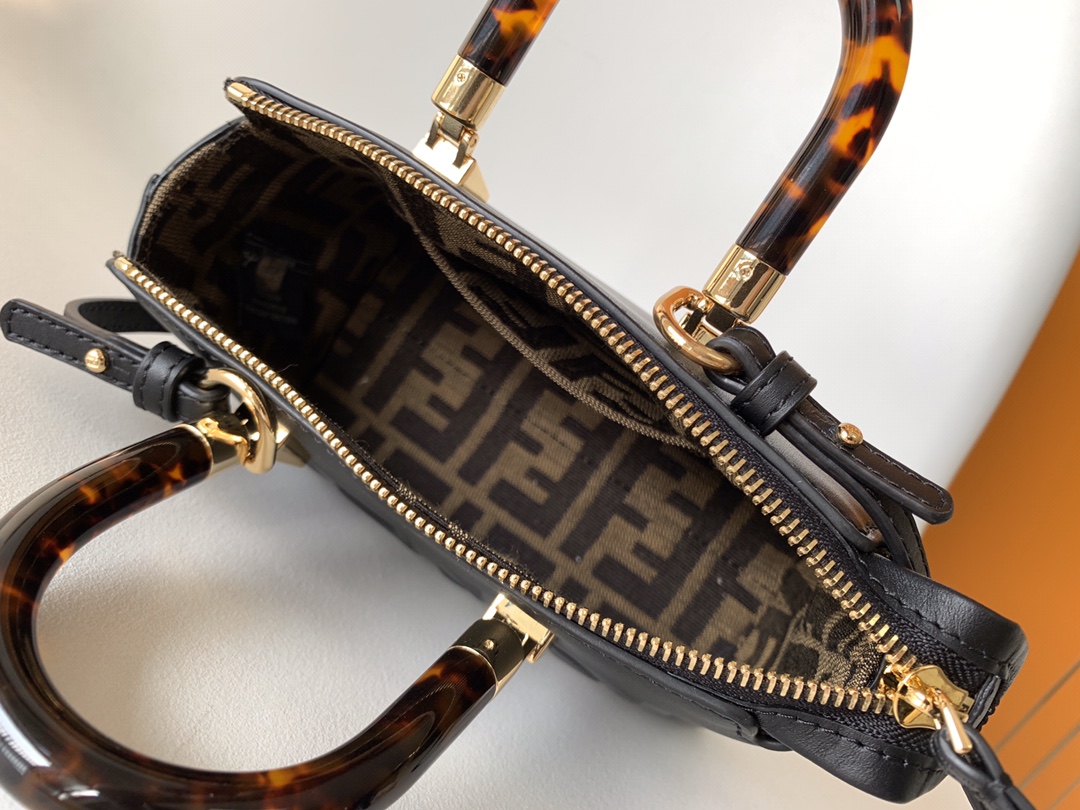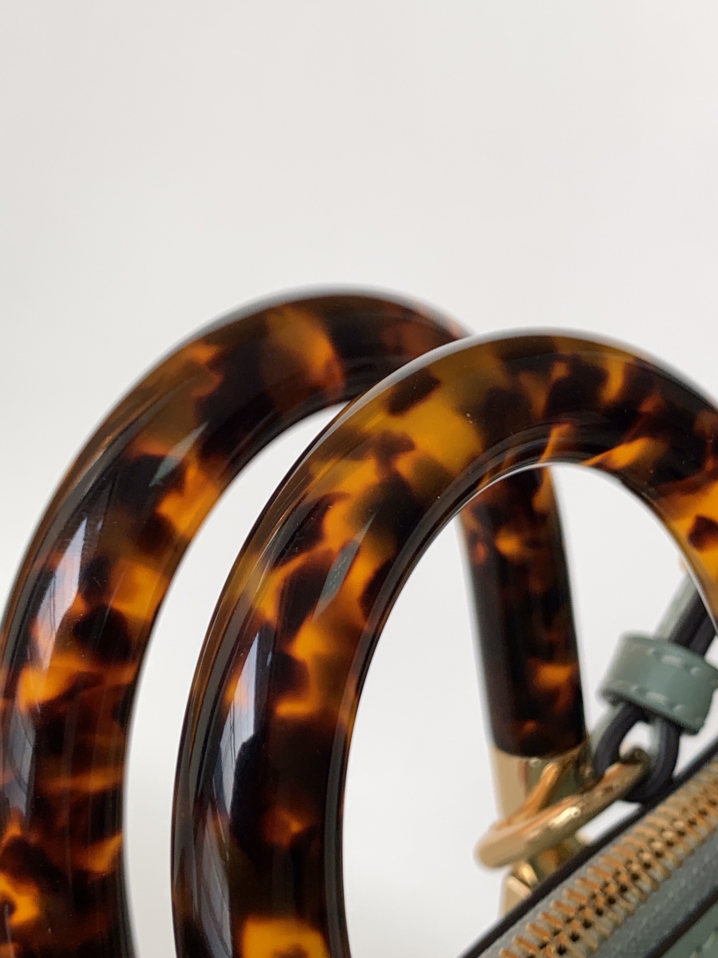 Material: Calfskin leather + tortoiseshell-effect acrylic handles, FF jacquard lining