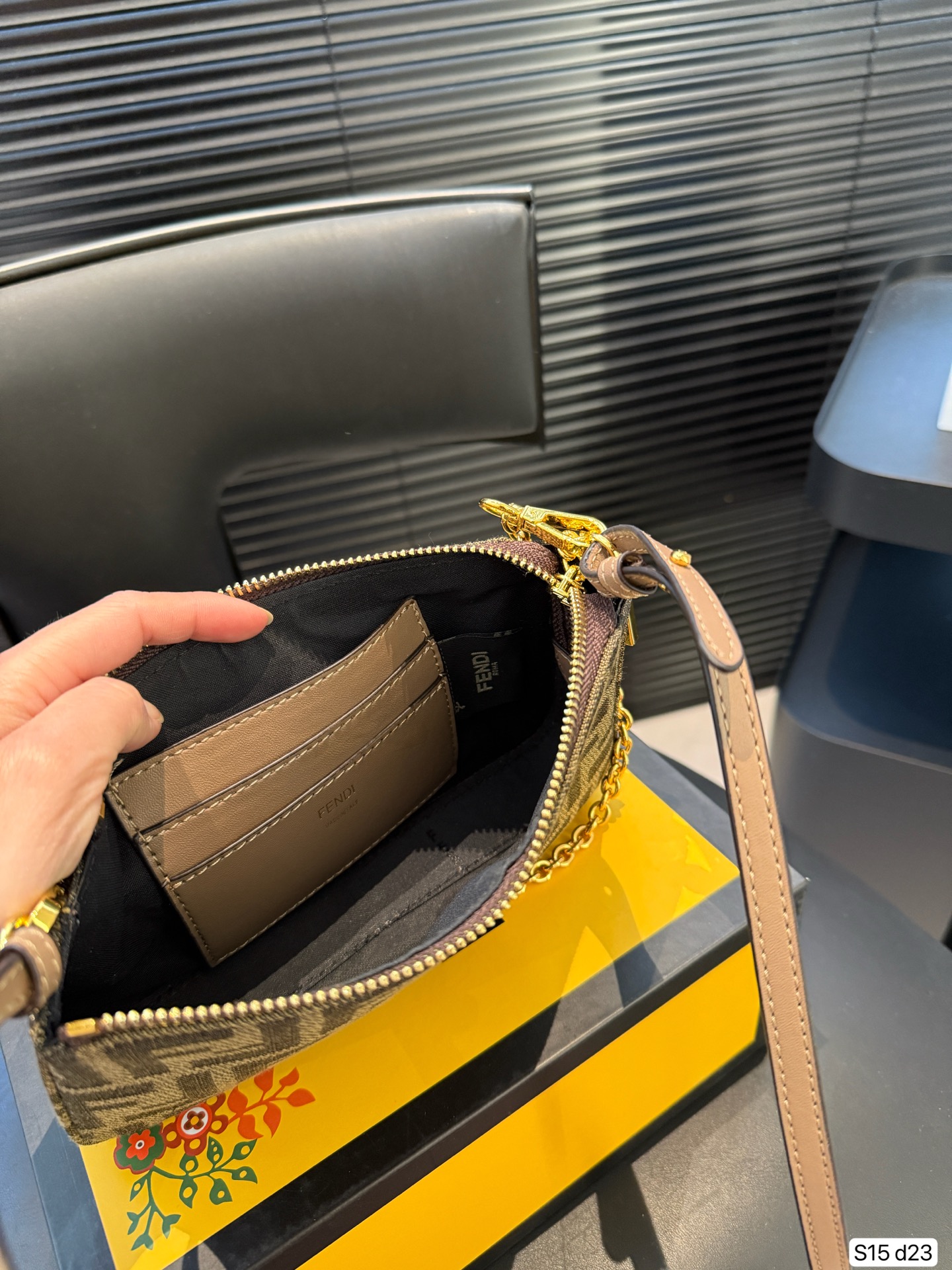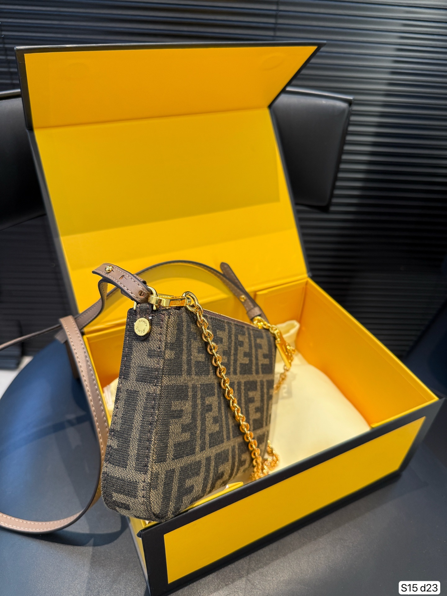 Baguette pouch made of fabric with jacquard FF motif. Closed by zip and zip-pull with iconic FF motif.