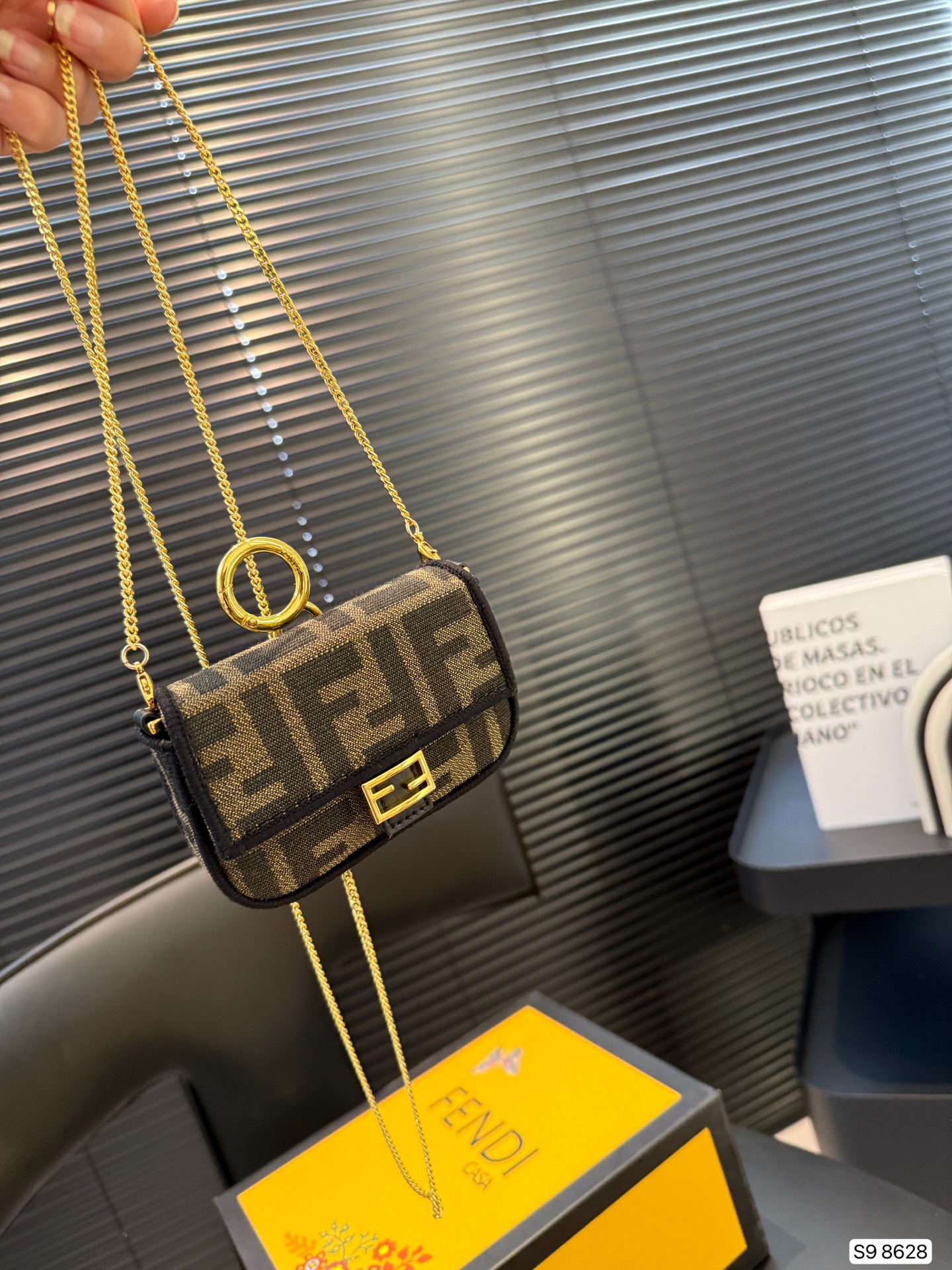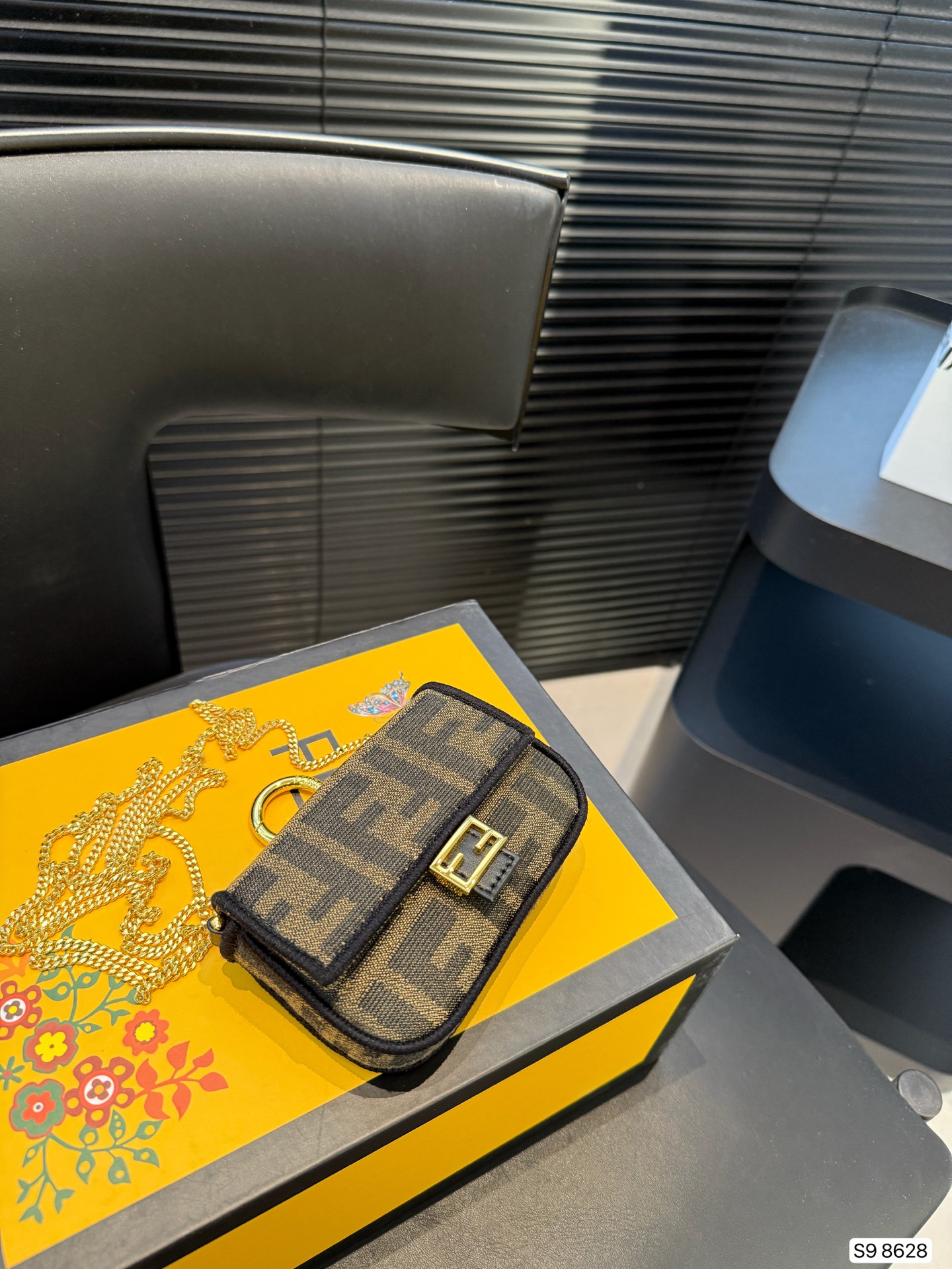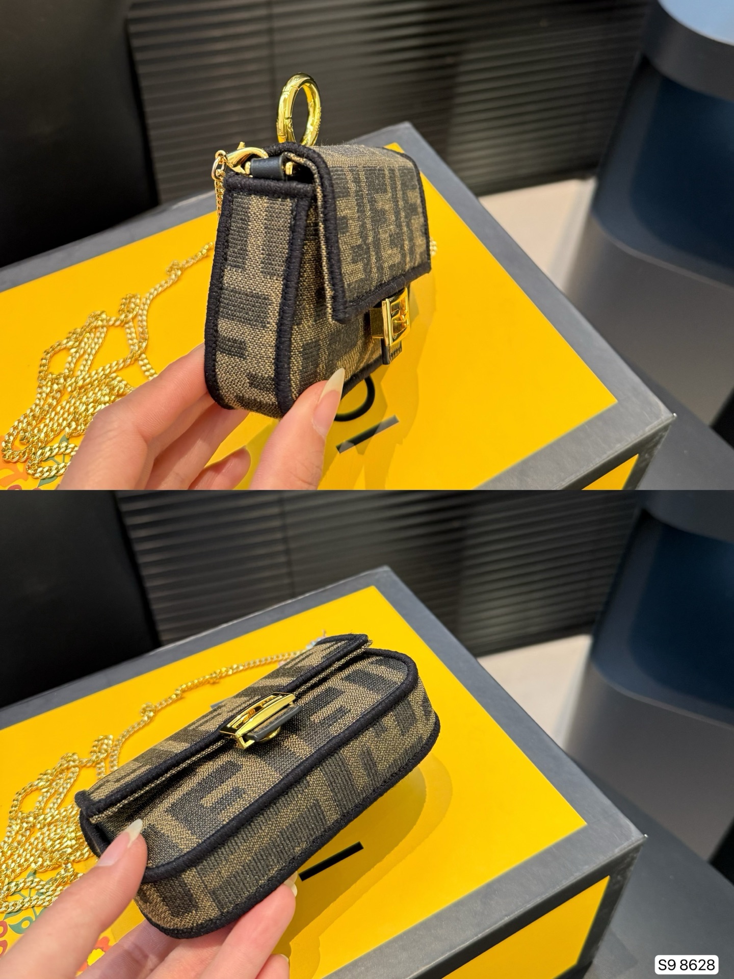 • Fendi Brown Jacquard FF Monogram Fabric Nano Baguette Charm