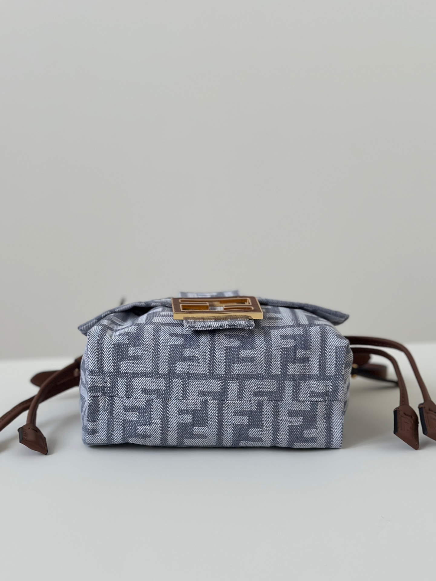 • Fendi Mamma Baguette Small Blue denim-effect FF jacquard mini-bag