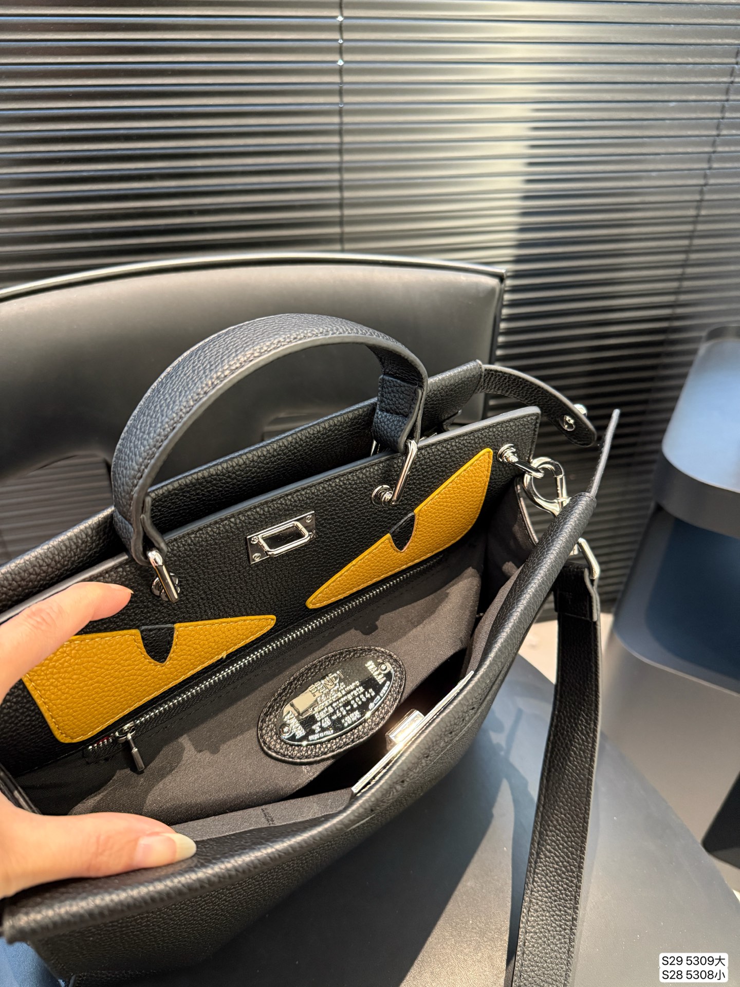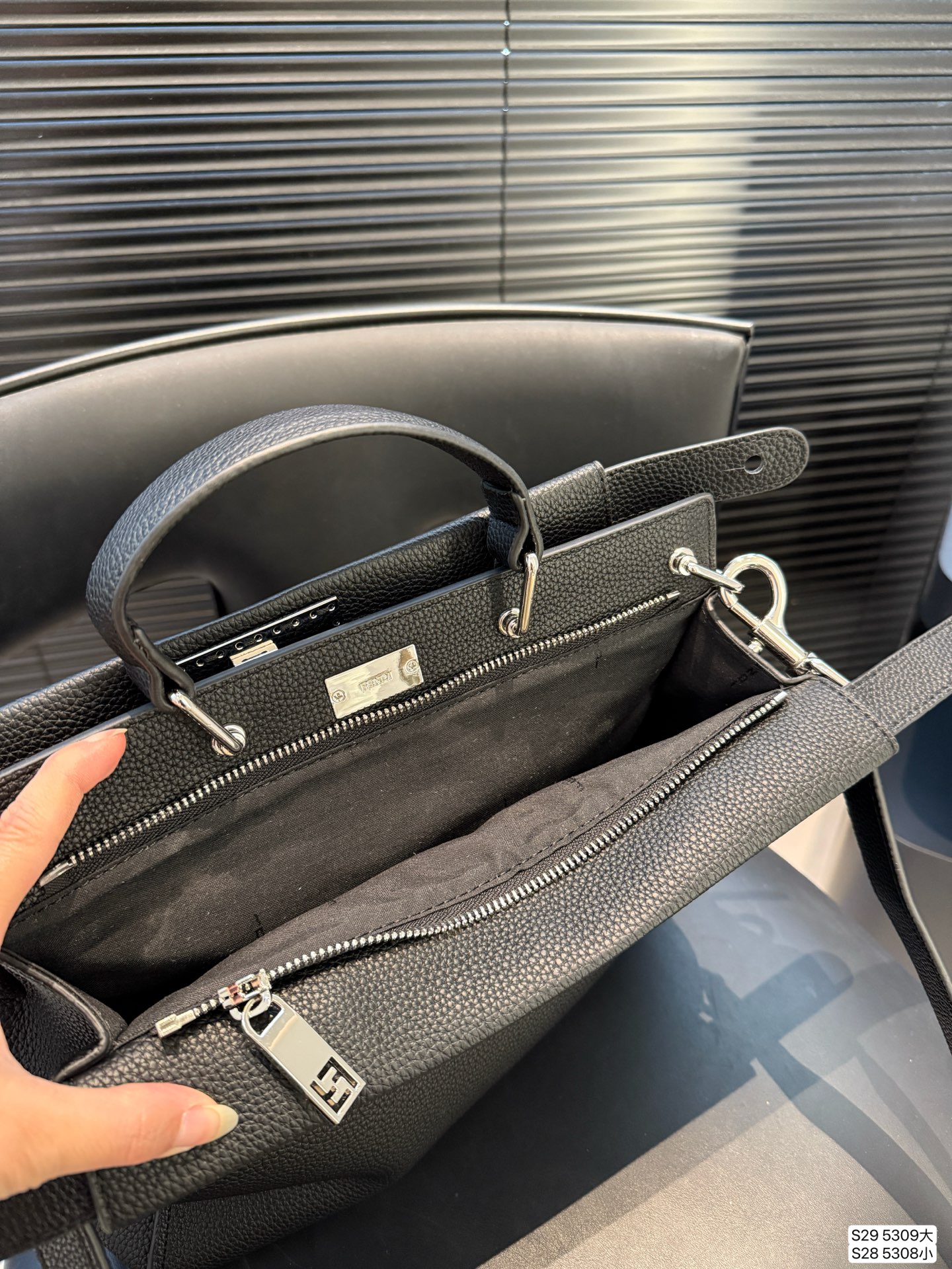 • Fendi Peekaboo Selleria shoulder bag in black grained leather