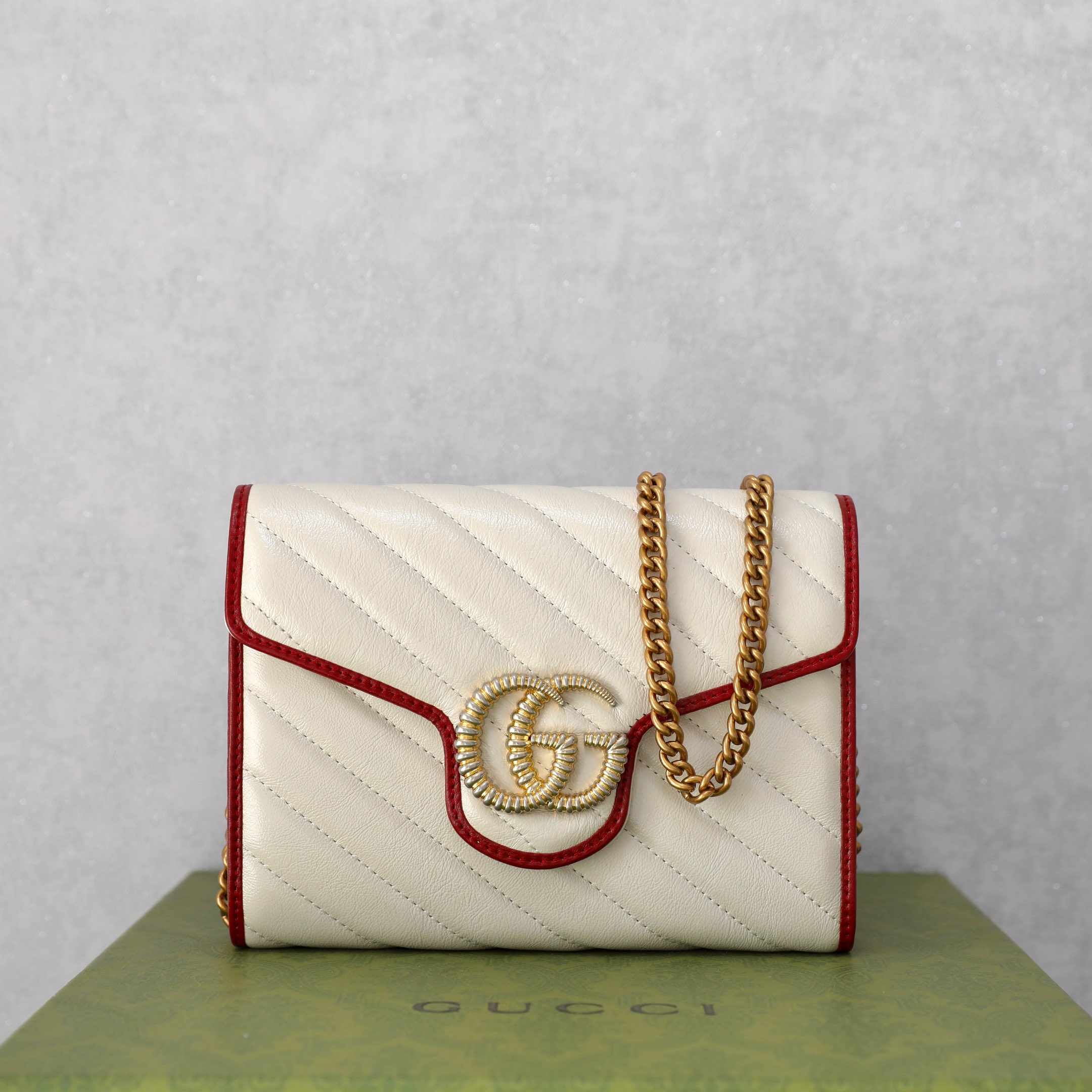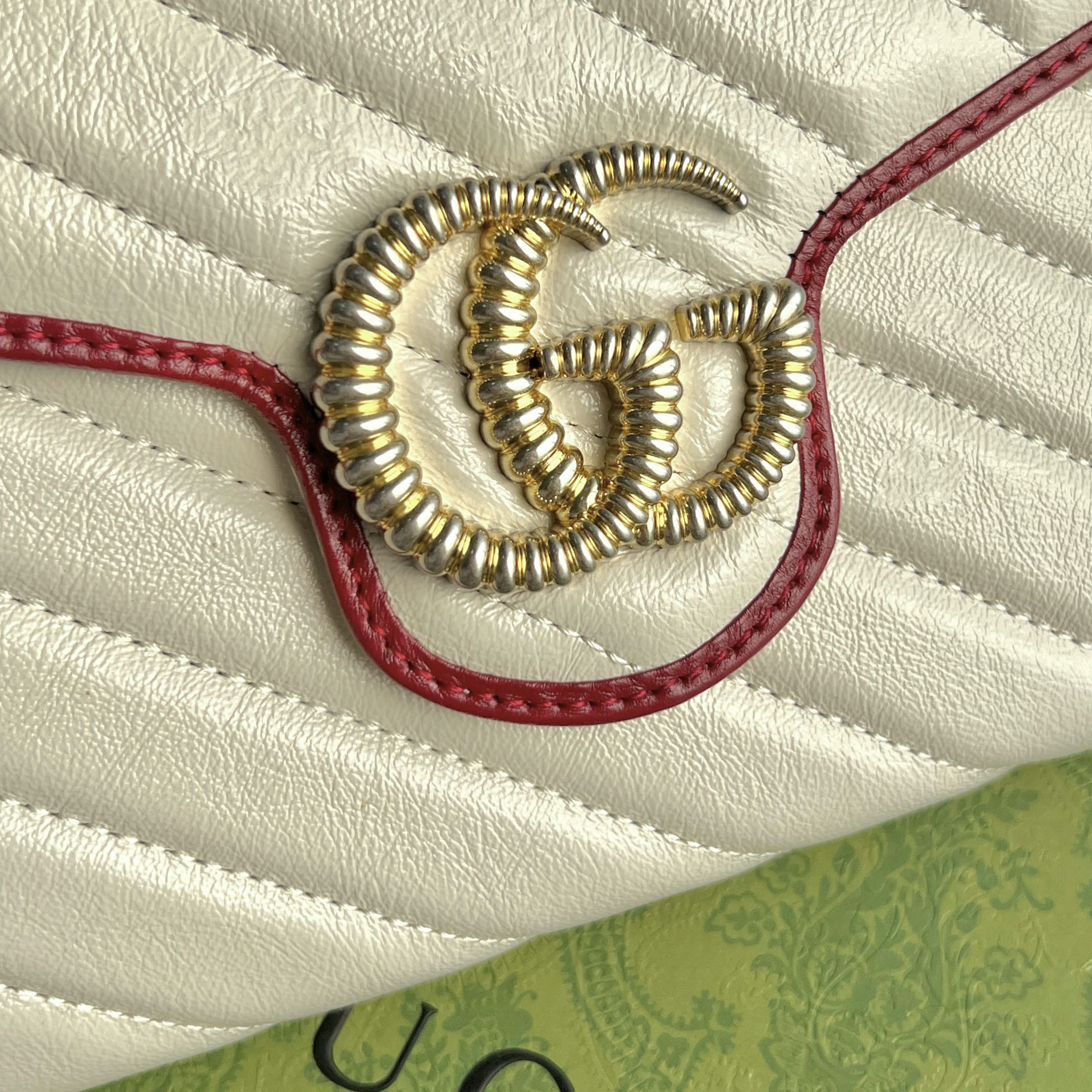 Exquisite craftsmanship meets youthful elegance in this mini GG Marmont WOC, an exclusive high-quality replica modeled directly from the original. With its accordion-style structure and vintage gold-tone double G hardware, this bag captures everything iconic about Gucci.