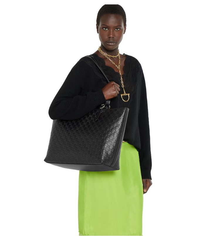 - Black embossed GG leather