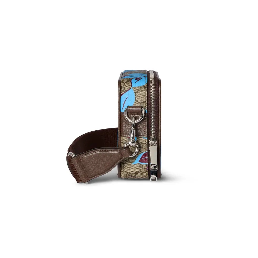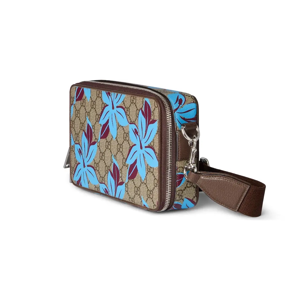 Material: Beige/Dark Brown GG Supreme canvas + blue floral印花, cotton-linen lining