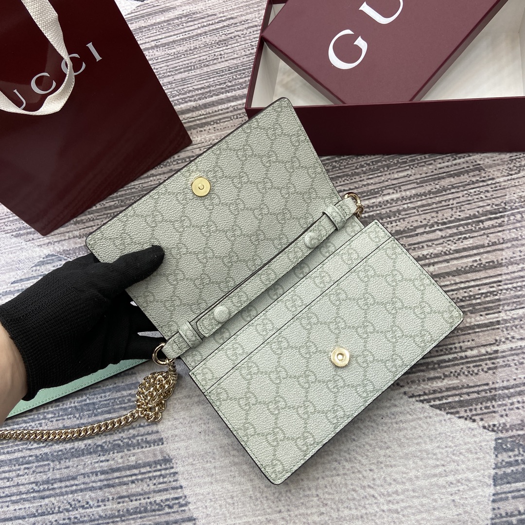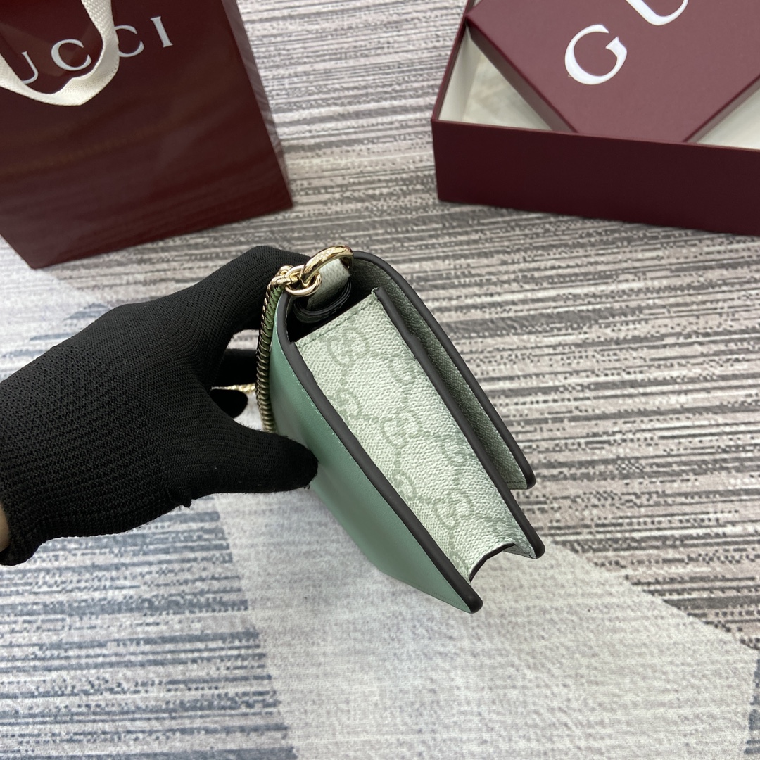 💼 20x13x4cm – Crafted from leather + iconic GG coated canvas with a detachable chain strap.
