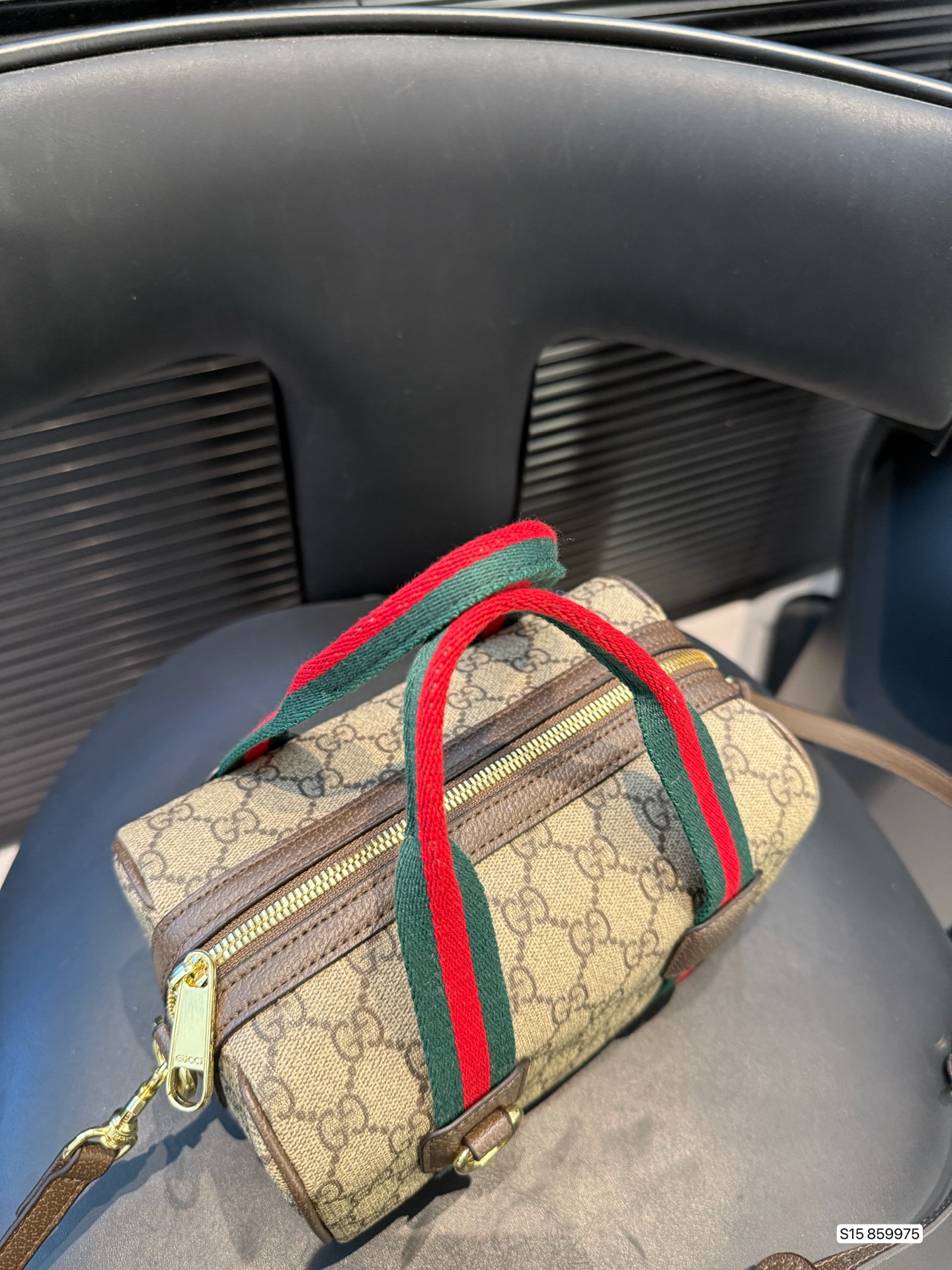 Inspired by the signature Gucci duffle silhouette, the House presents the Mini GG handbag. Crafted in soft GG Monogram canvas and featuring Web stripe handles and a detachable strap, the style revisits the House’s codes and celebrated travel legacy.