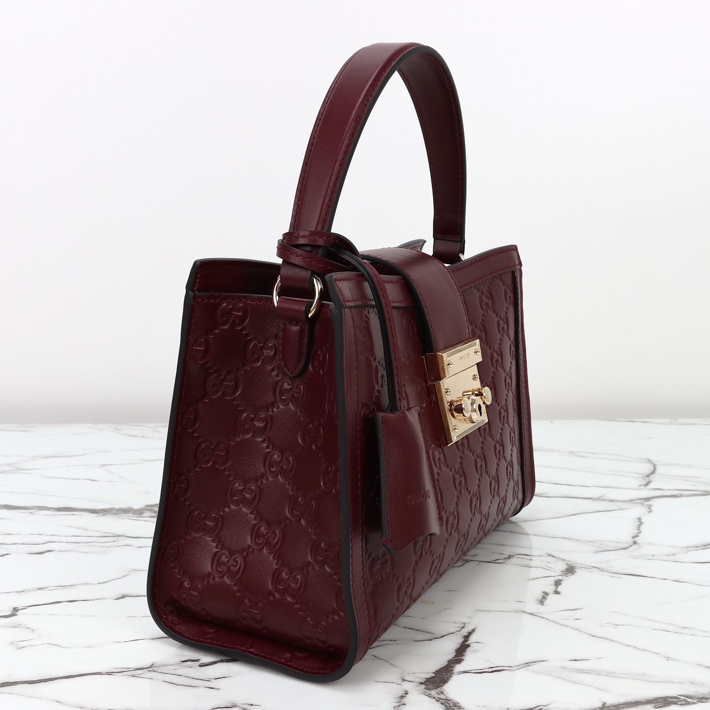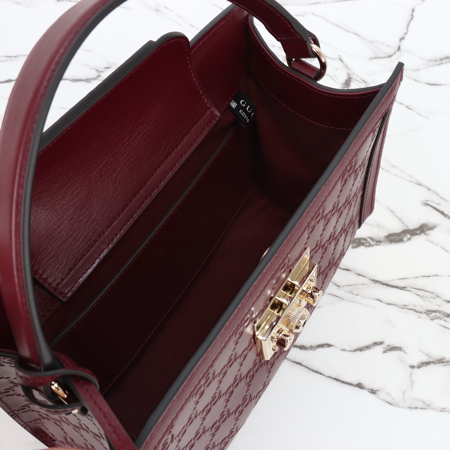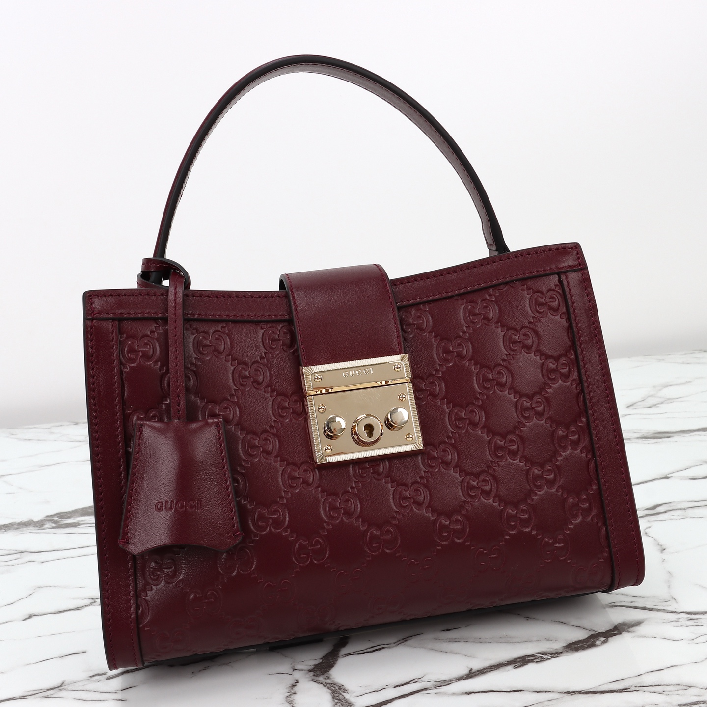 • Gucci Padlock Medium top handle bag in Rosso Ancora red GG leather