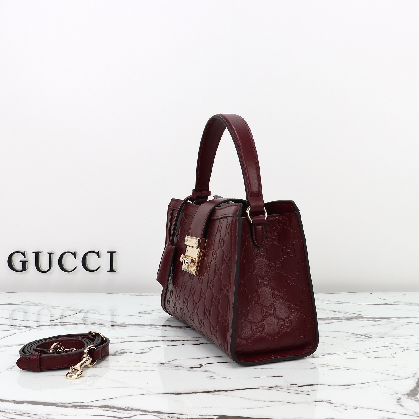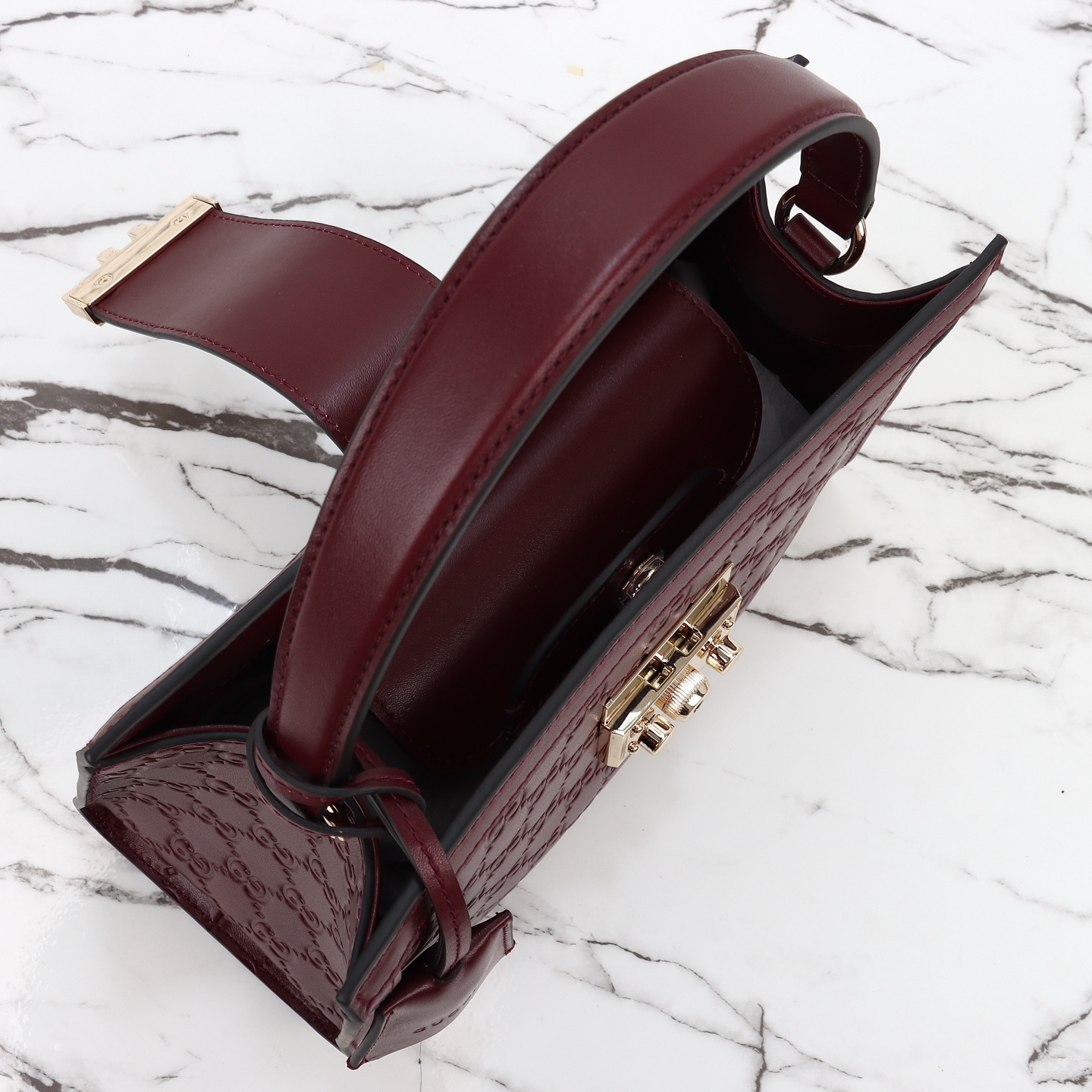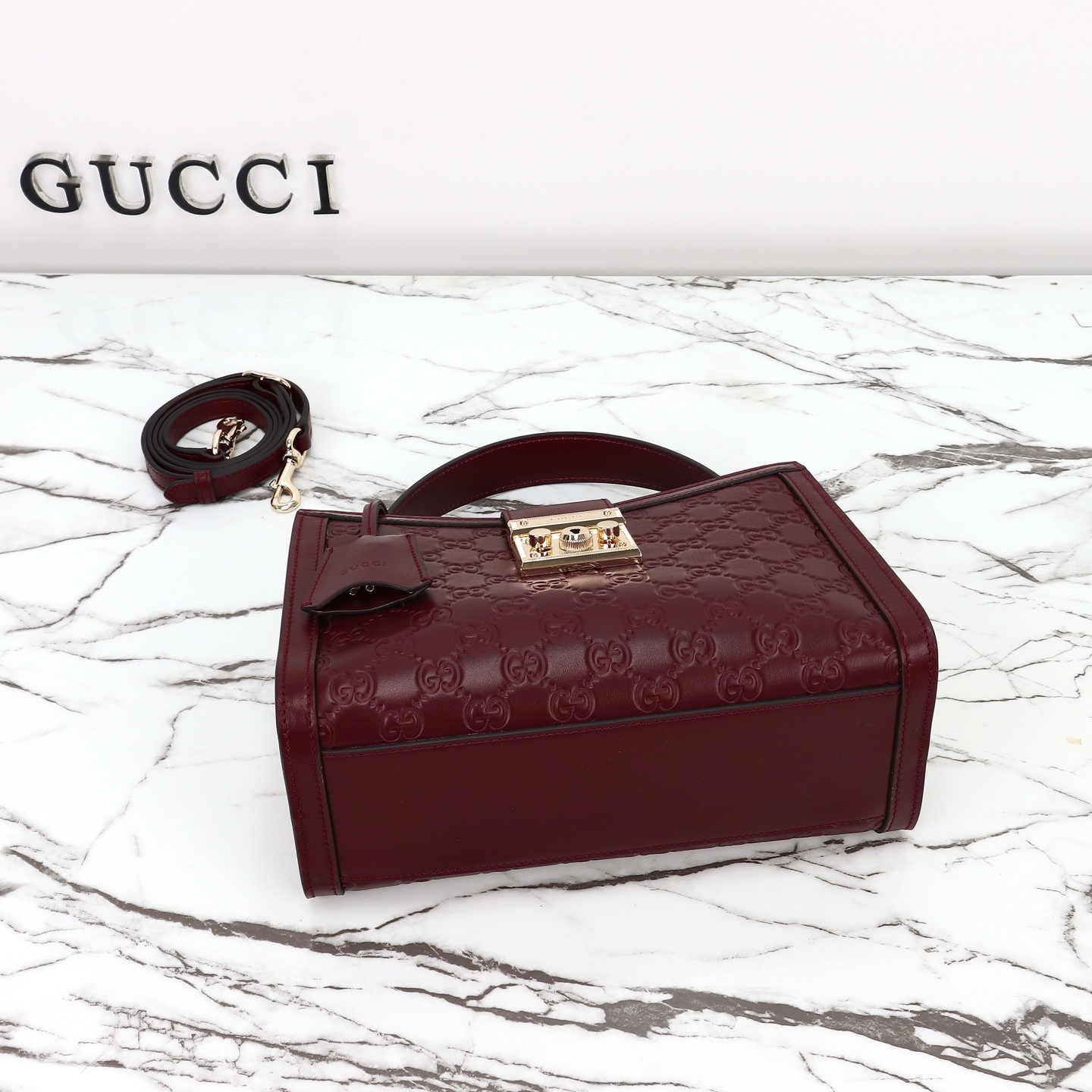 • Gucci Padlock Medium top handle bag in Rosso Ancora red GG leather