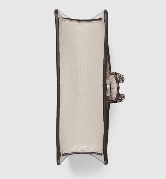A shiny patent leather brings a fresh take to the Dionysus’ well-structured design, while creating contrast with the signature tiger head hardware in a silver tone.