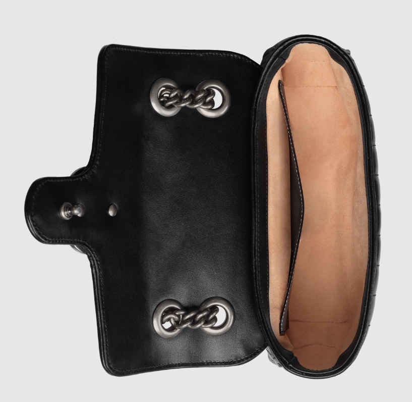 The Gucci Aria collection is an exploration of the House’s most emblematic codes and symbols. The GG Marmont is synonymous with its matelassé leather and monogram hardware. Here, the mini shoulder bag is reimagined with a new geometric take on its signature finish that combines vertical and diagonal motifs.