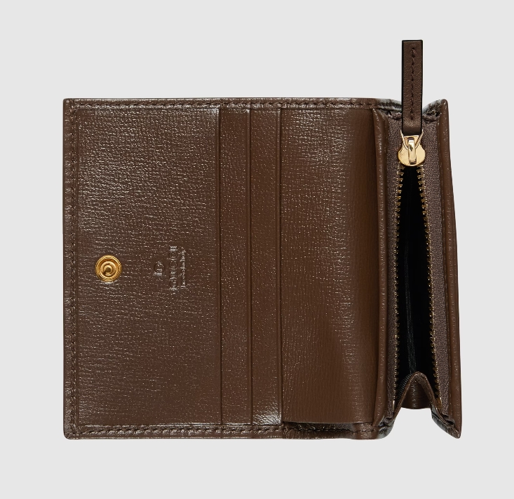 Introduced within the Gucci Horsebit 1955 accessories collection for Spring Summer 2020, the card case wallet is presented in GG Supreme canvas and brown leather. The line is defined by the same double bar and ring design that is found within handbags—a detail that is part of Gucci’s genetic code and established as one of the most distinctive elements among the House symbols borrowed from the equestrian world.