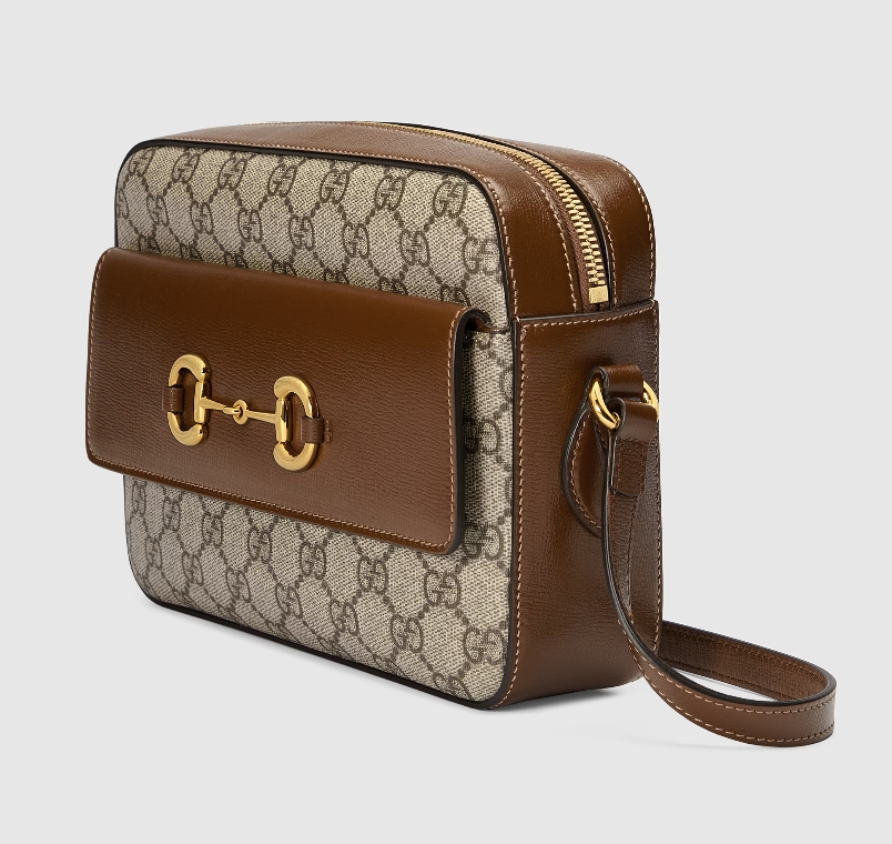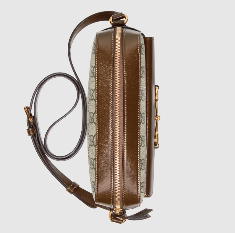 The Horsebit has become synonymous with the brand. Tracing back to Gucci’s equestrian roots, the double ring and bar design is a piece of the House’s heritage. The Epilogue collection’s Gucci Horsebit 1955 unifies this original details first introduced over six decades ago with a modern spirit in a small beige and ebony GG Supreme shoulder bag completed by a special mechanism that adjusts the length of the shoulder strap so it can be carried on one shoulder or cross body.