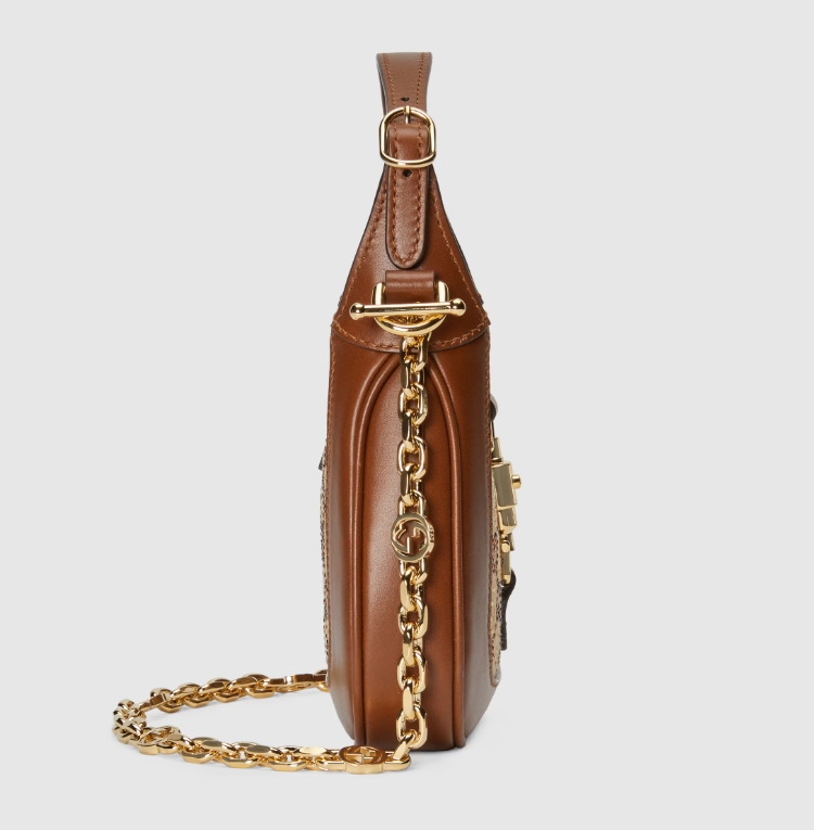 Brought back to the forefront, the Jackie 1961’s recognisable shape is presented in timeless camel and ebony GG canvas with crystals that add an eclectic feel. Enhanced by a second detachable strap, the archival style takes on a contemporary feel, providing new ways to wear—from top handle, shoulder to cross body.