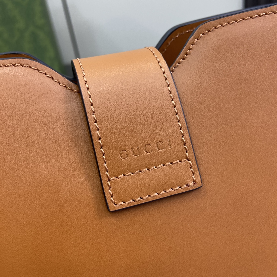 Mini Bucket Shoulder Bag. This mini bucket shoulder bag is crafted in classic and timeless brown leather. With hook closure and web shoulder strap design, this accessory combines functionality and modernity.