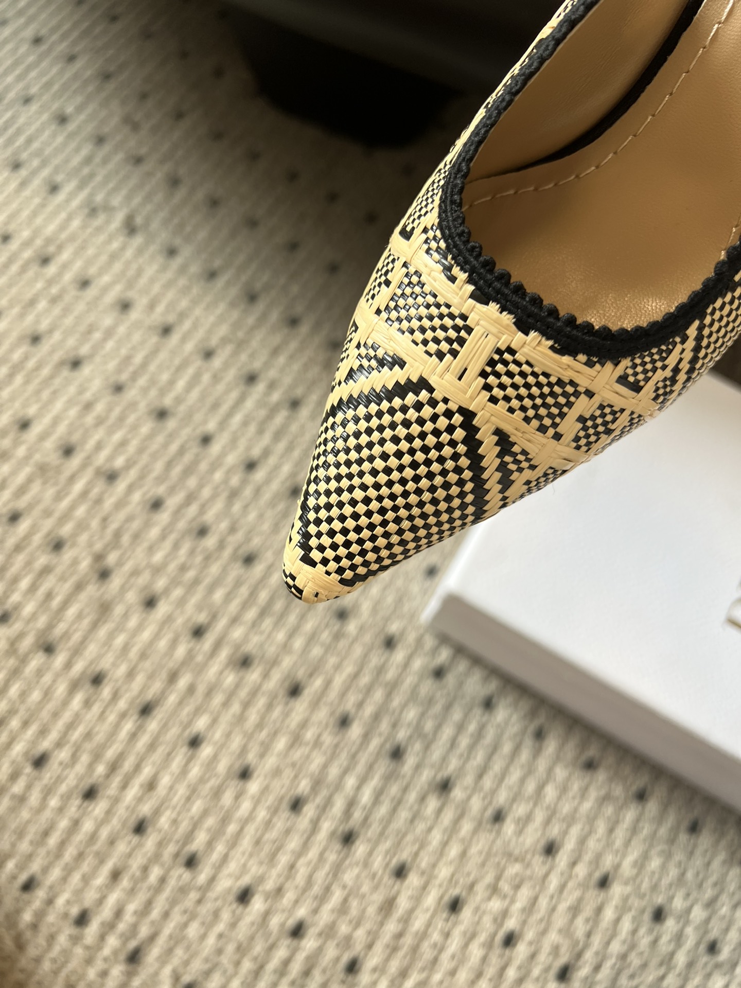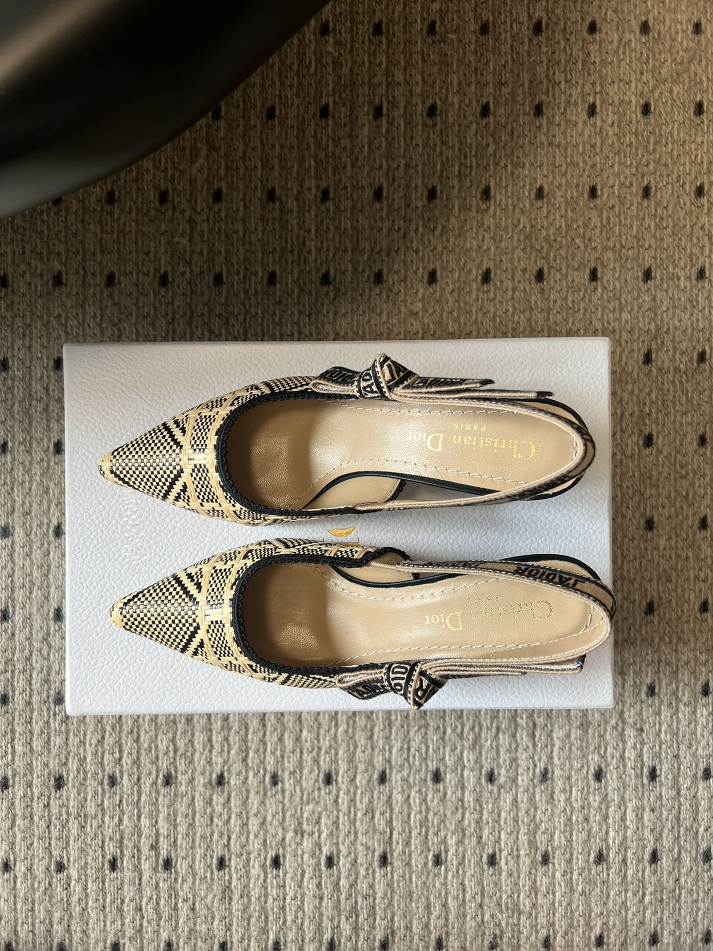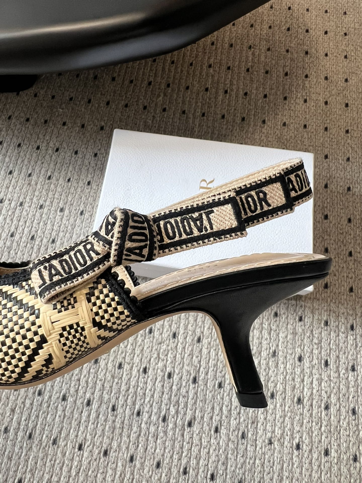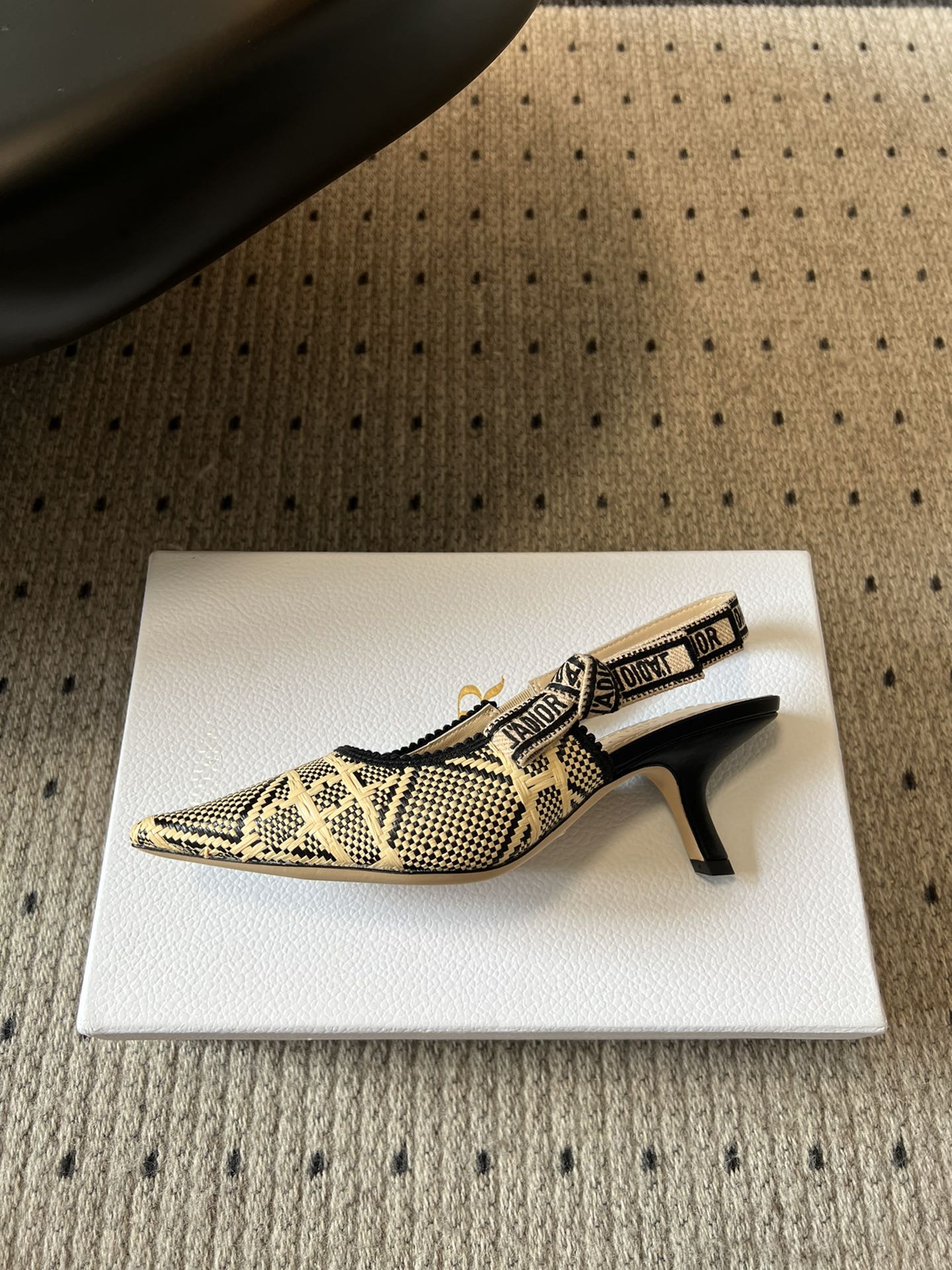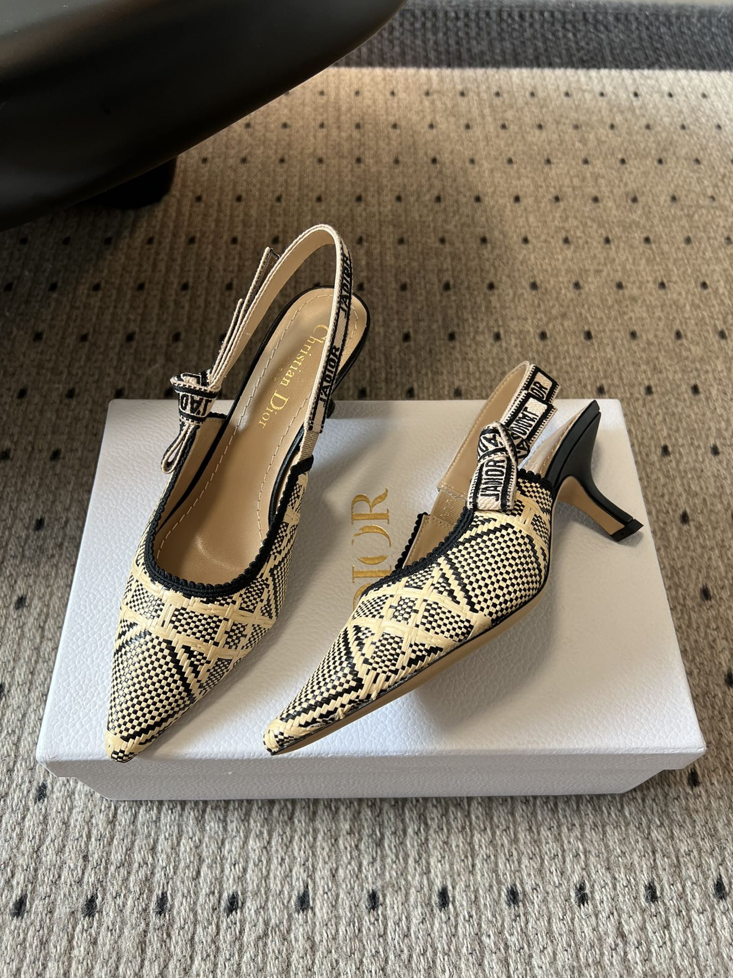 The J'Adior slingback pump is a prime example of Dior's savoir-faire. Crafted with passion in Christian Dior's Italian ateliers, the silhouette is distinguished by the iconic Cannage motif in natural and black raffia. Together with the J'Adior embroidered cotton ribbon and its flat bow, the 6.5-cm (2.5-inch) comma heel finishes the elegant and refined creation.