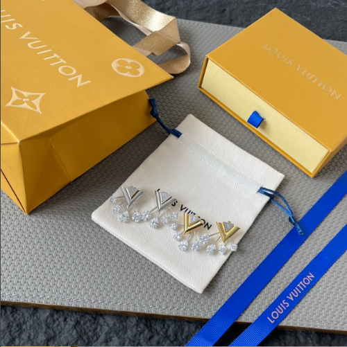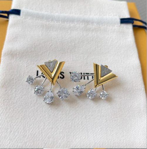 L V V For Vuitton earringsThe classic elements of the brand are interpreted with gentle strokes. The Vuitton V logo is carved with shining metal and surrounded by bright imitation crystal, which can easily light up various fields! BGK