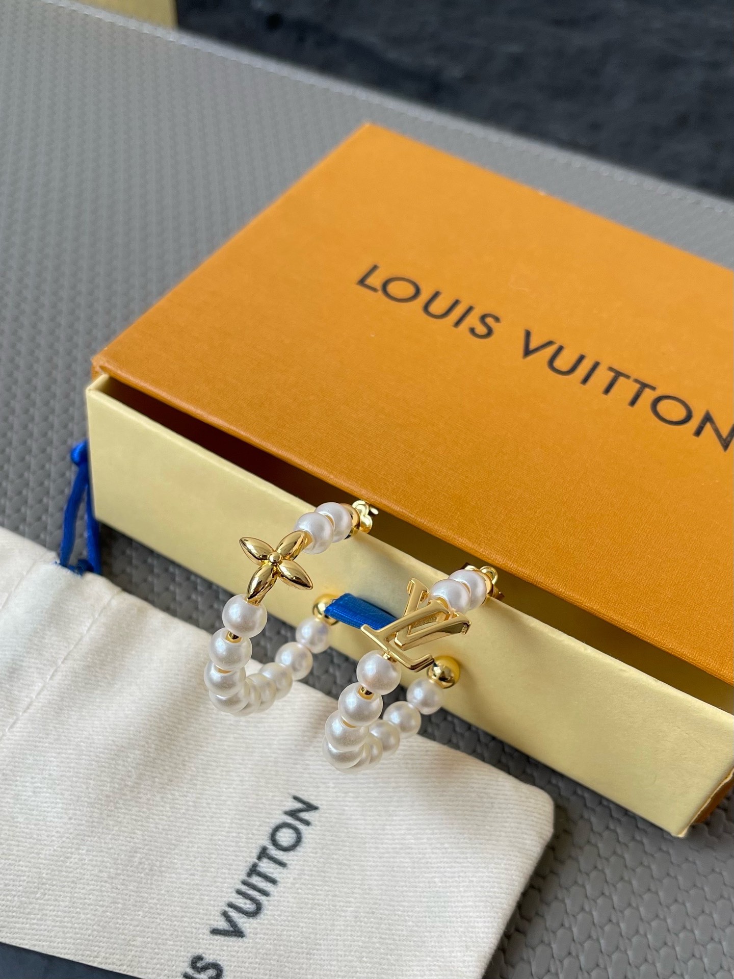 Pearls Fusion uses white pearls/blue beads to create an asymmetric design, interspersed with Monogram floral inscription decoration and LV elements, slowly revealing the Dandy style. The LV letters are embellished to show the cool interpretation of beads. 𝐁𝐇𝐊